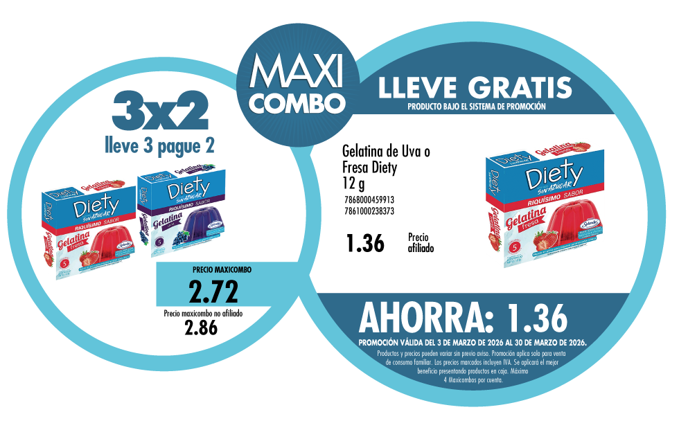 Maxicombo 3×2 -53. Disponible en nuestros locales. Precio y stock pueden variar según la tienda.