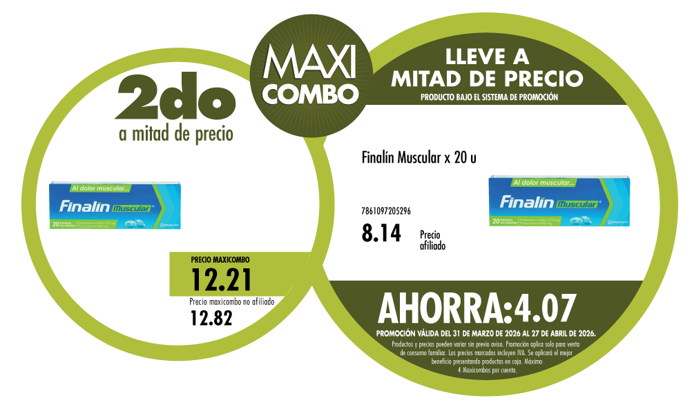 Maxicombo mitad de precio 14. Disponible en nuestros locales. Precio y stock pueden variar según la tienda.