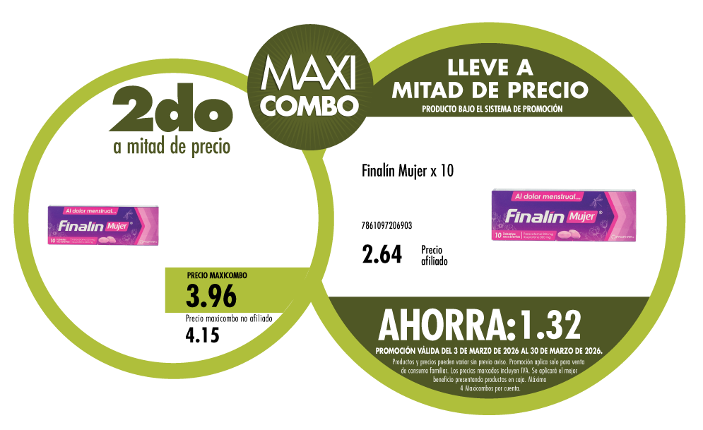 Maxicombo mitad de precio 18. Disponible en nuestros locales. Precio y stock pueden variar según la tienda.
