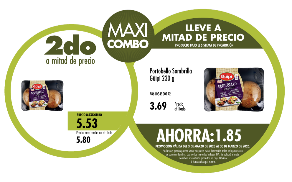 Maxicombo mitad de precio 21. Disponible en nuestros locales. Precio y stock pueden variar según la tienda.