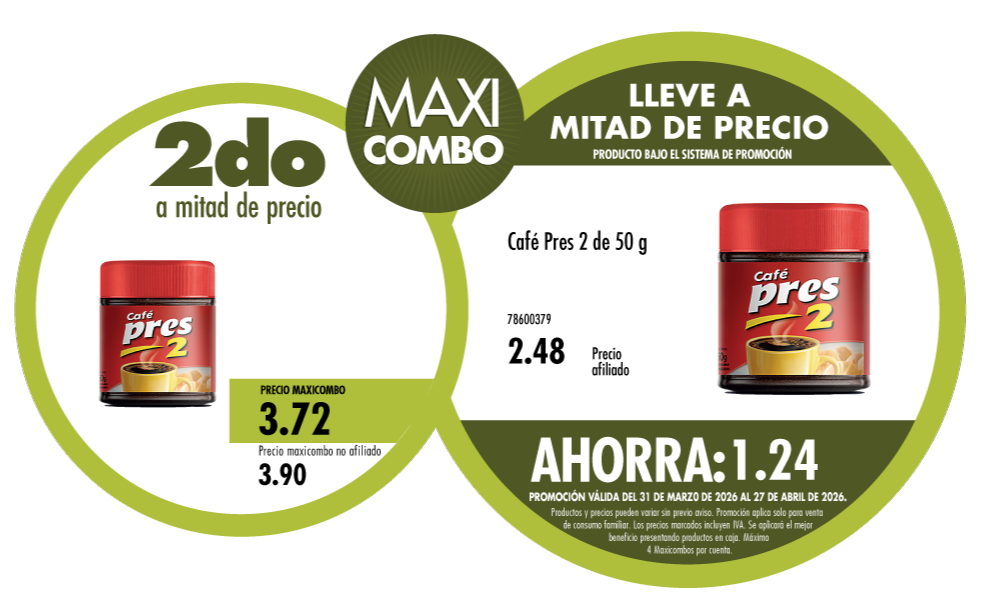 Maxicombo mitad de precio 23. Disponible en nuestros locales. Precio y stock pueden variar según la tienda.