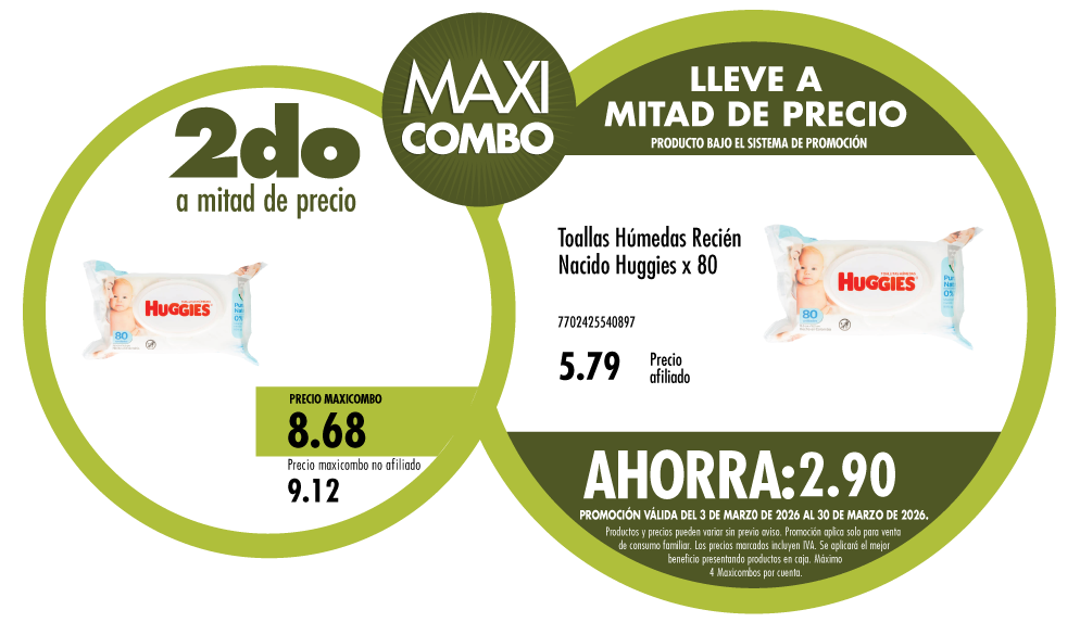 Maxicombo mitad de precio 29. Disponible en nuestros locales. Precio y stock pueden variar según la tienda.