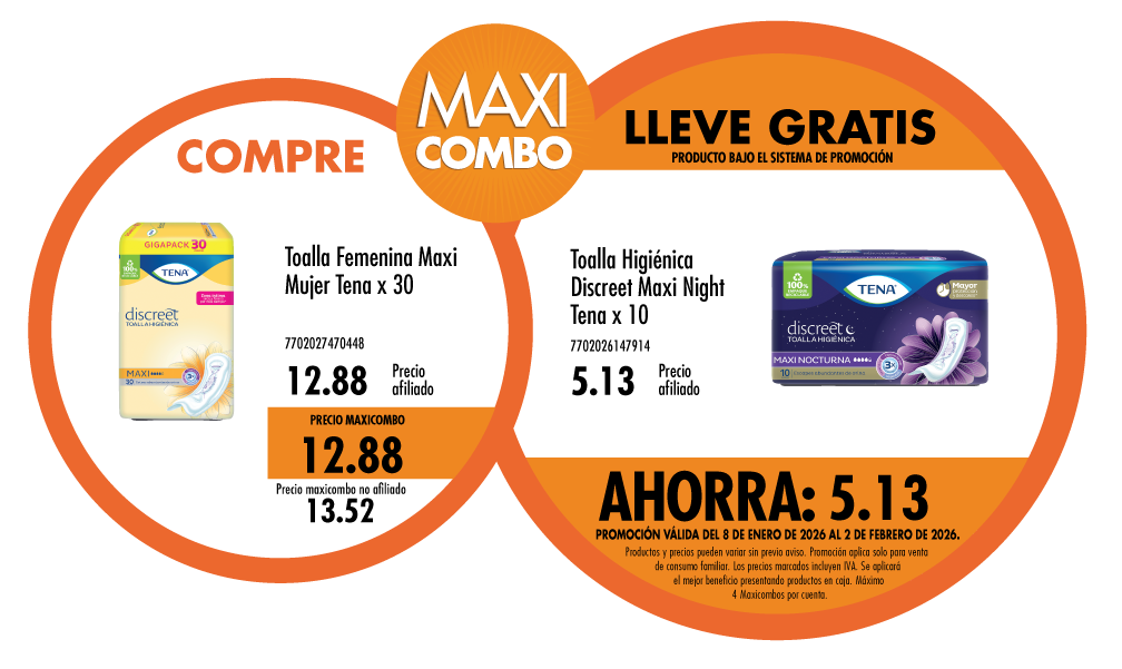 MAXICOMBO NORMAL 21. Disponible en nuestros locales. Precio y stock pueden variar según la tienda.