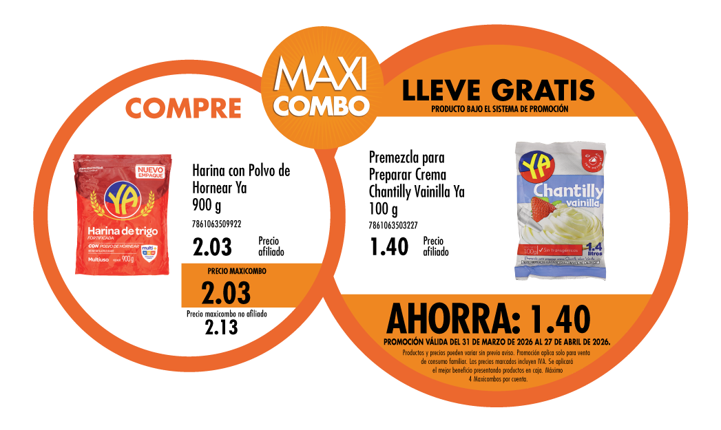 MAXICOMBO NORMAL 23. Disponible en nuestros locales. Precio y stock pueden variar según la tienda.