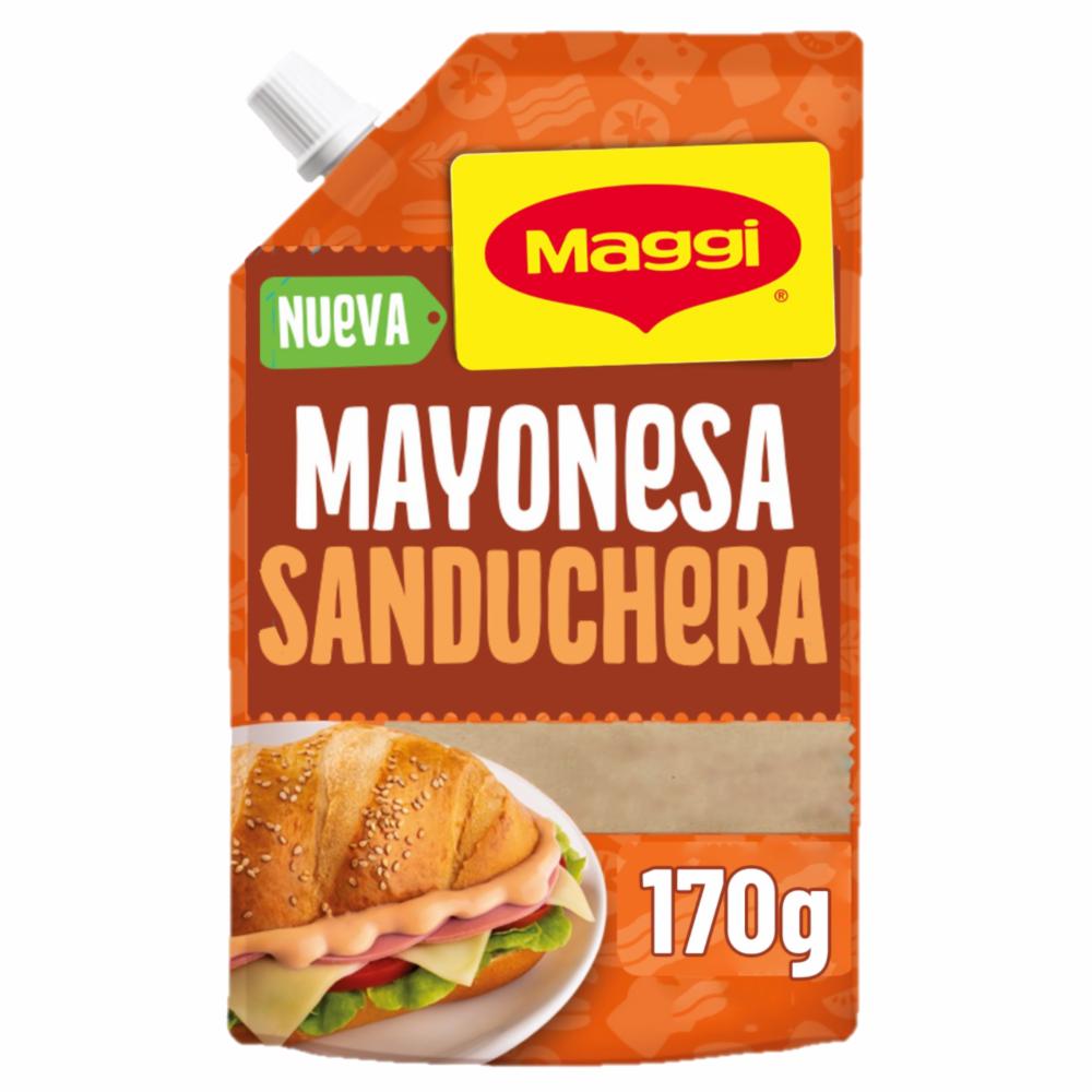 Nueva Mayonesa Sanduchera MAGGI®, una deliciosa mezcla de mayonesa, tomate, especias y un toque de sabor a pepinillos. El toque perfecto para tus sánduches y otras preparaciones favoritas. ¡Pruébala ya!