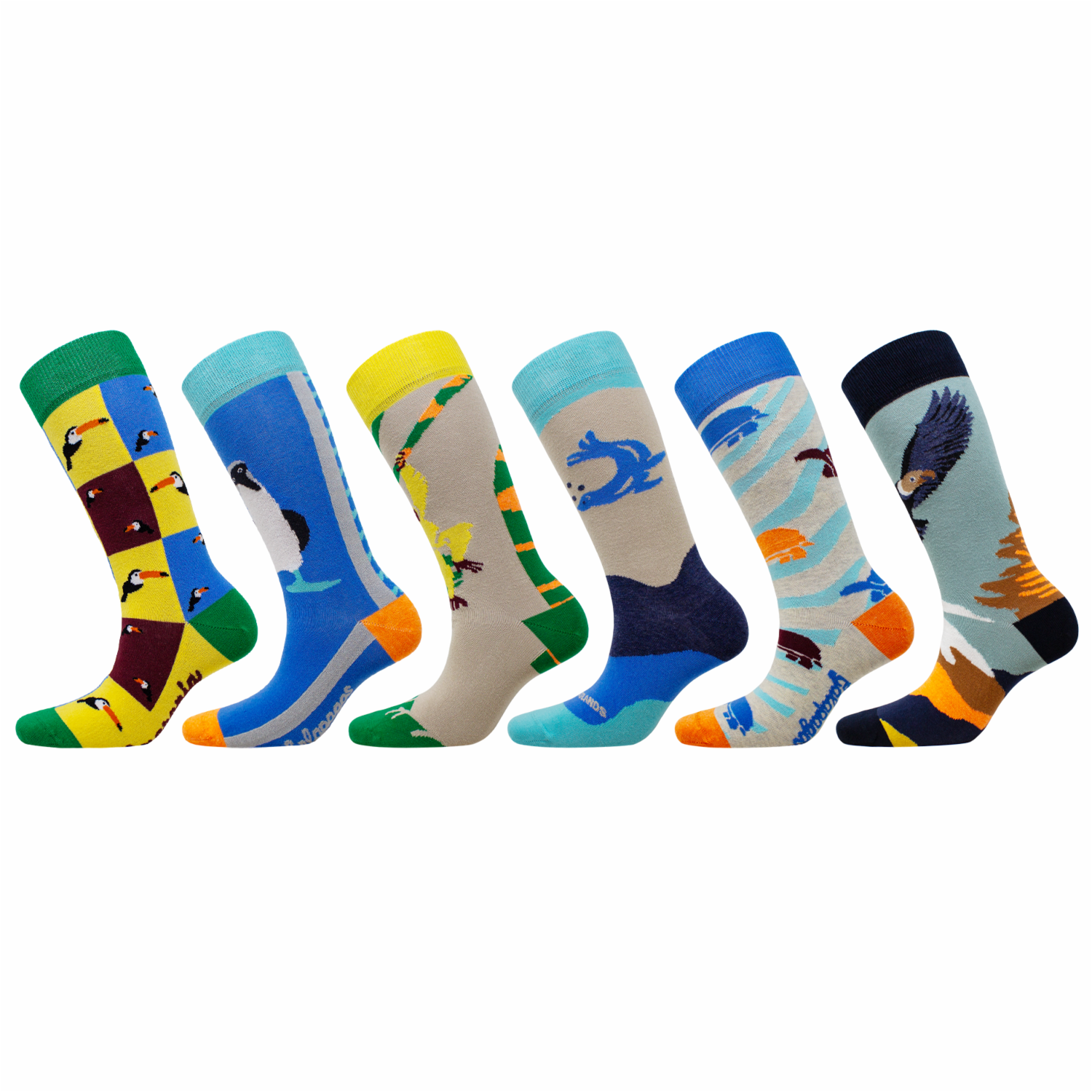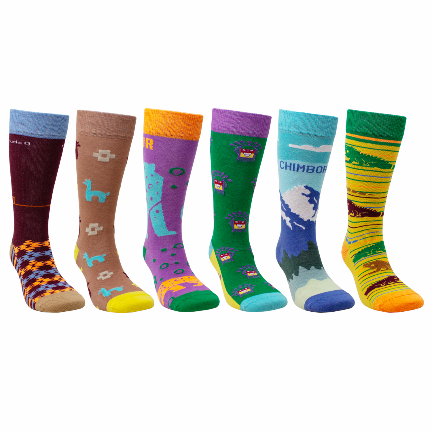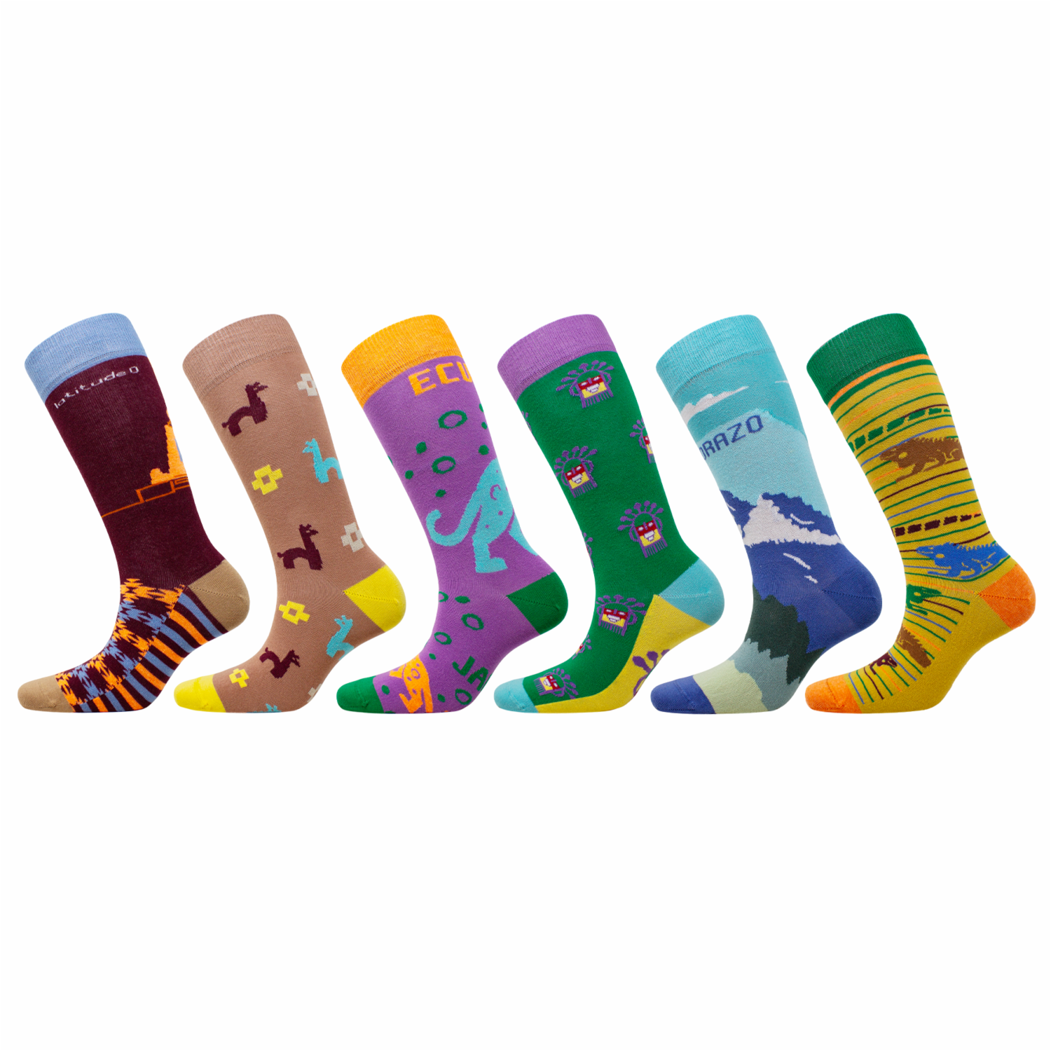 • Estos calcetines poseen las siguientes características: corte alto, sin costura en las puntas, varios diseños del Ecuador y tejido liso