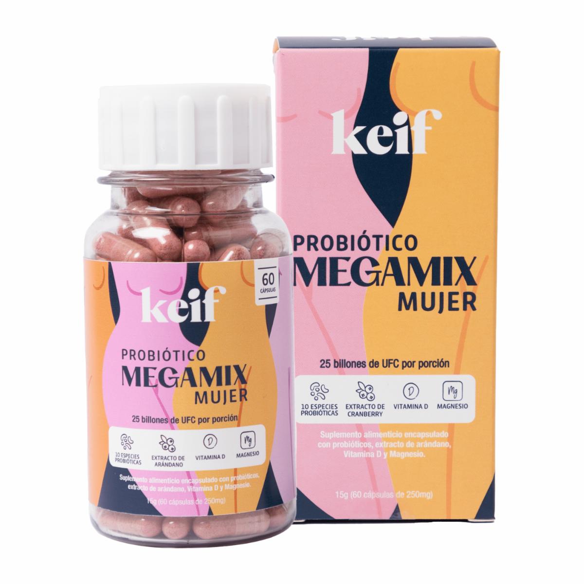 Megamix Probióticos Suplemento Alimenticio Para Mujer KEIF 60 Cápsulas De 250 Mg