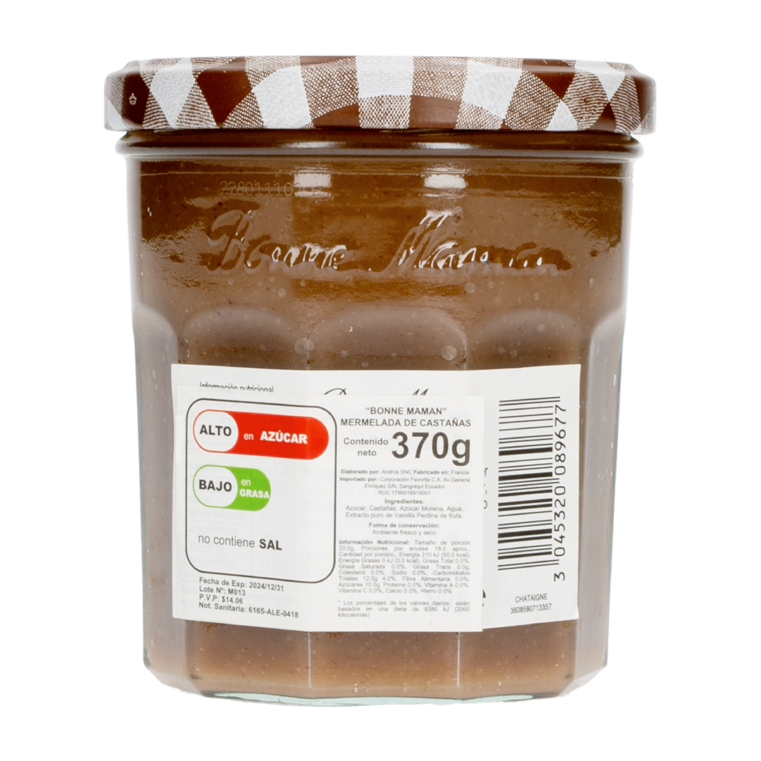 consultando preciosMermelada De Castañas BONNE MAMAN 370 G – BONNE MAMAN. Disponible en nuestros locales. Precio y stock pueden variar según la tienda.