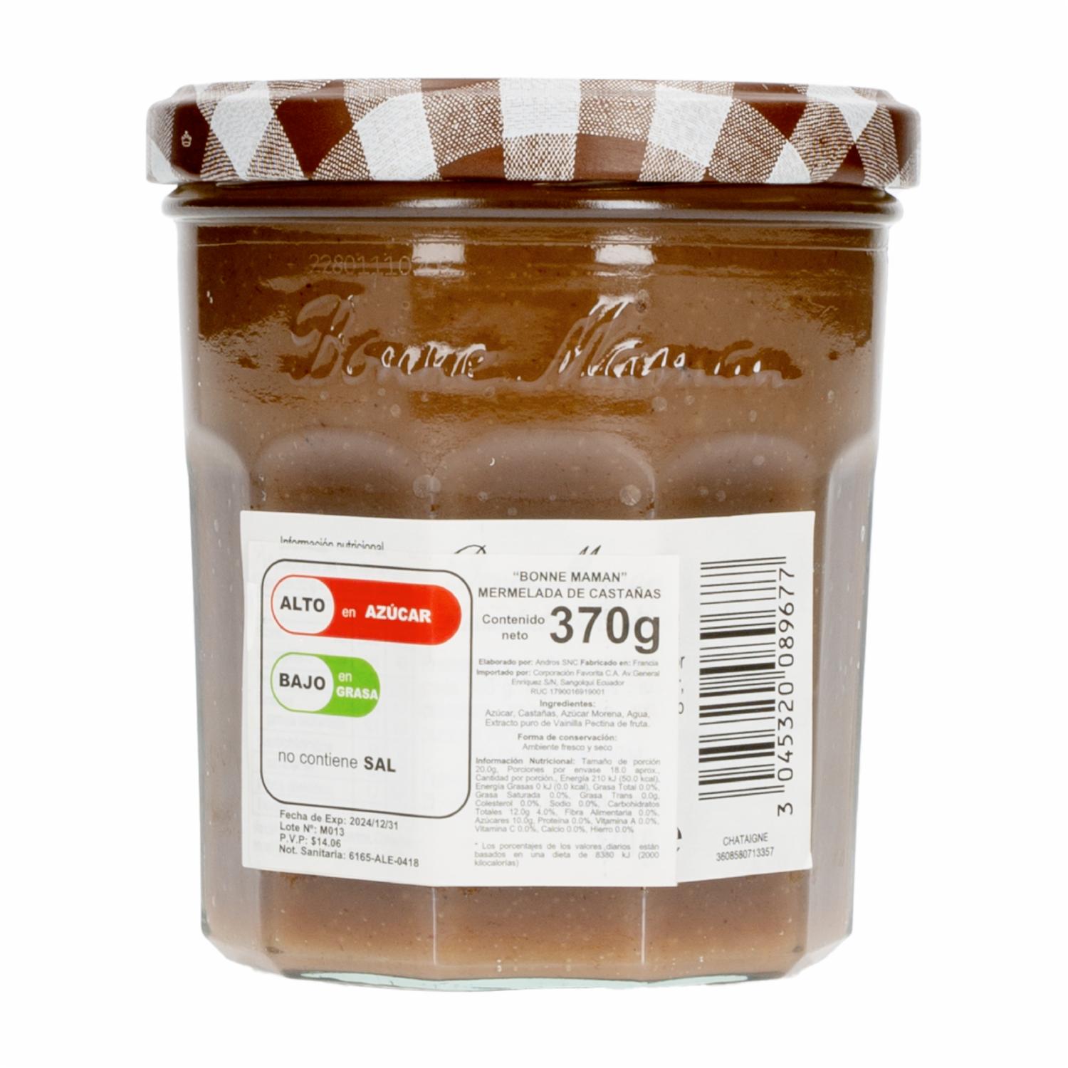 - Elaborada con castañas de alta calidad. - Sin conservantes ni colorantes artificiales. - Textura suave y cremosa. - Sabor dulce y agradable. - Ideal para untar en pan, galletas o usar como ingrediente en postres