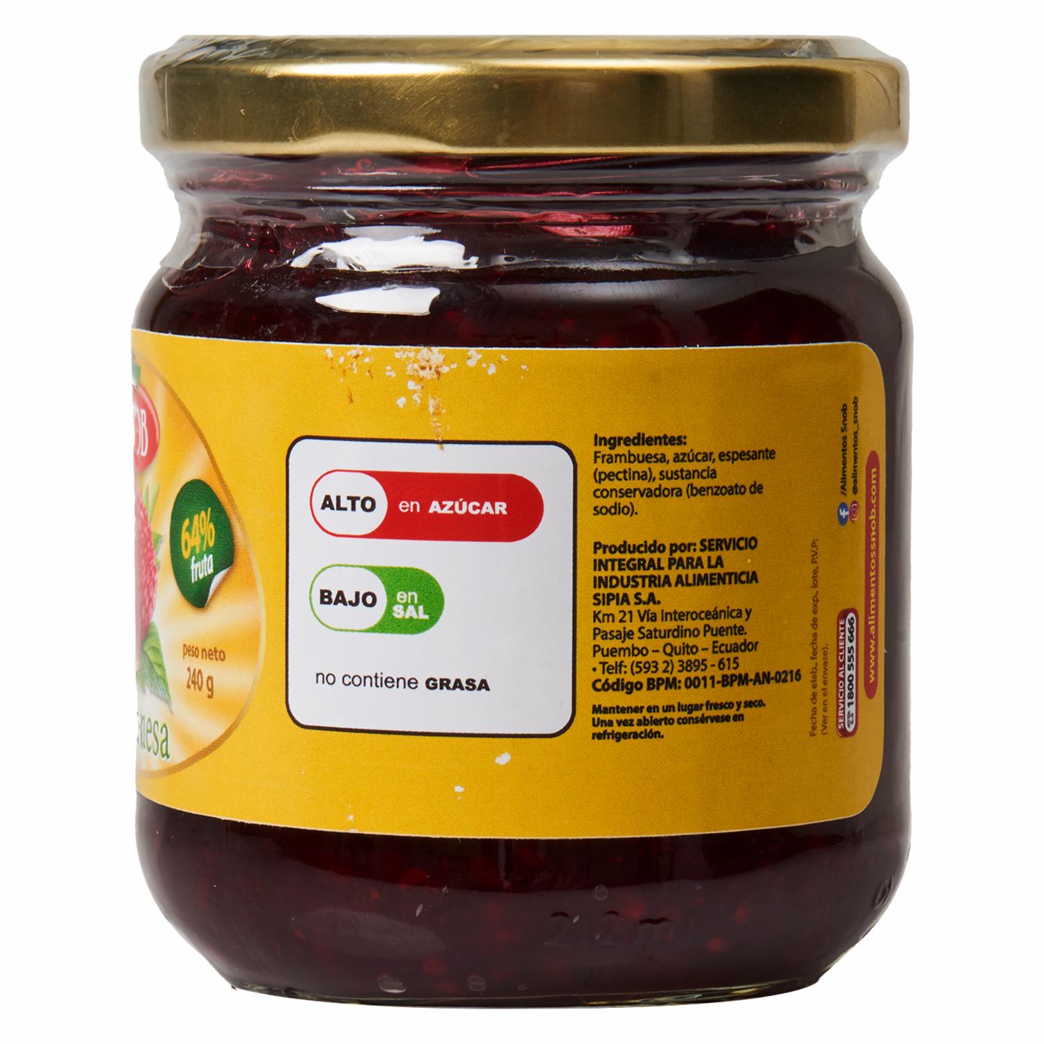 Mermelada De Frambuesa SNOB 240 G – SNOB. Disponible en nuestros locales. Precio y stock pueden variar según la tienda.