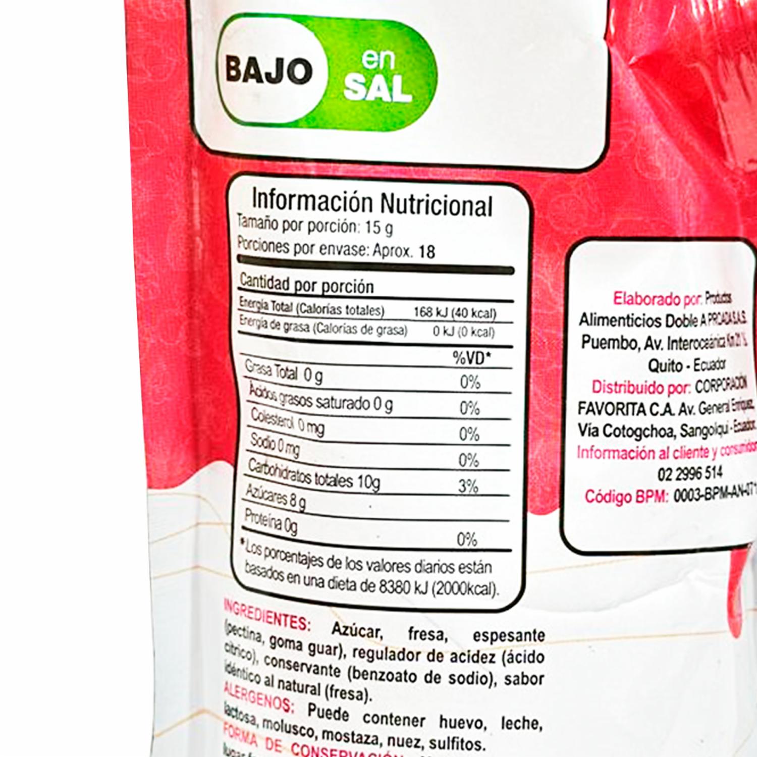 - Acompañamiento dulce para diversos alimentos, especialmente en desayunos con galletas, pan, tostadas etc. Una vez abierto el producto mantener en un ambiente fresco y seco,