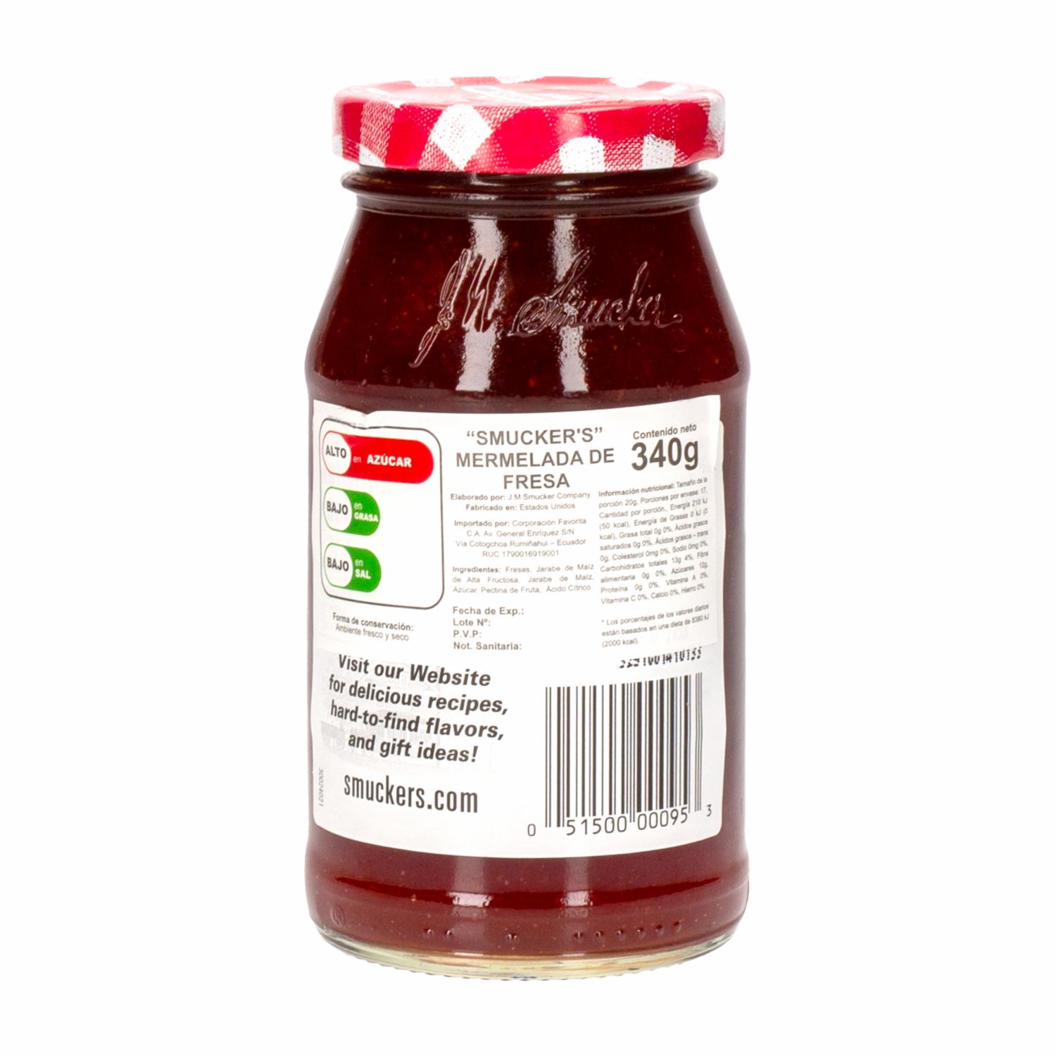 - Una delicia para los paladares de todas las edades nos trae la marca Smucker's con su exquisita mermelada de frutilla. Sabor único que puedes disfrutar en este gran envase. Sin grasas saturadas. Producto Kosher