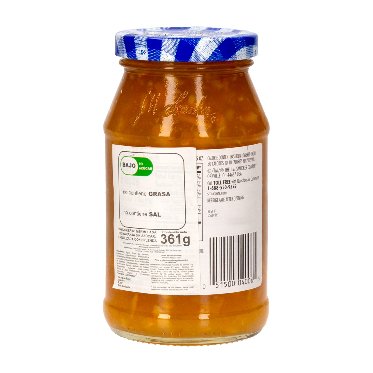 - Una delicia para los paladares de todas las edades nos trae la marca Smucker's con su exquisita mermelada de naranja. Sabor único que puedes disfrutar en este gran envase. Sin grasas saturadas. Producto Kosher