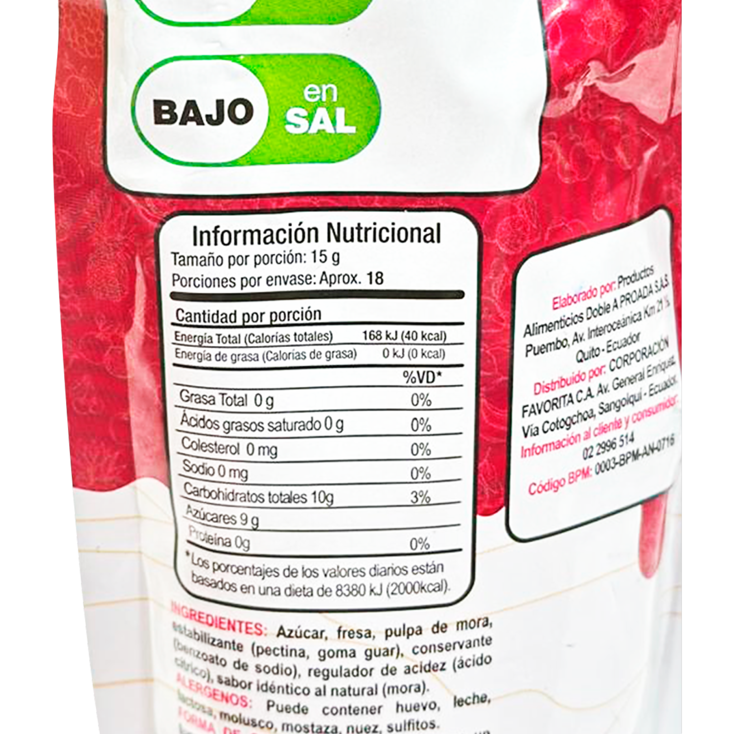 - Acompañamiento dulce para diversos alimentos, especialmente en desayunos con galletas, pan, tostadas etc. Una vez abierto el producto mantener en un ambiente fresco y seco,