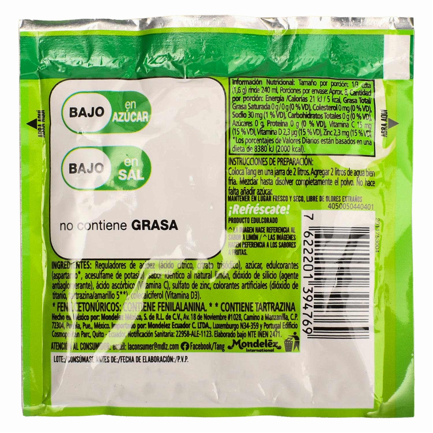 Mezcla En Polvo Para Prepara Bebida Sabor A Limón TANG 13 G
