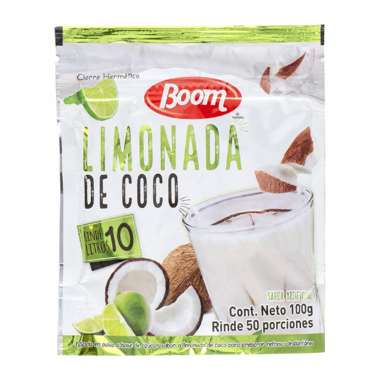- Mezcla en polvo a base de azúcar sabor a limonada de coco, para preparar refresco instantáneo. Rinde 10 litros. Con cierre hermético