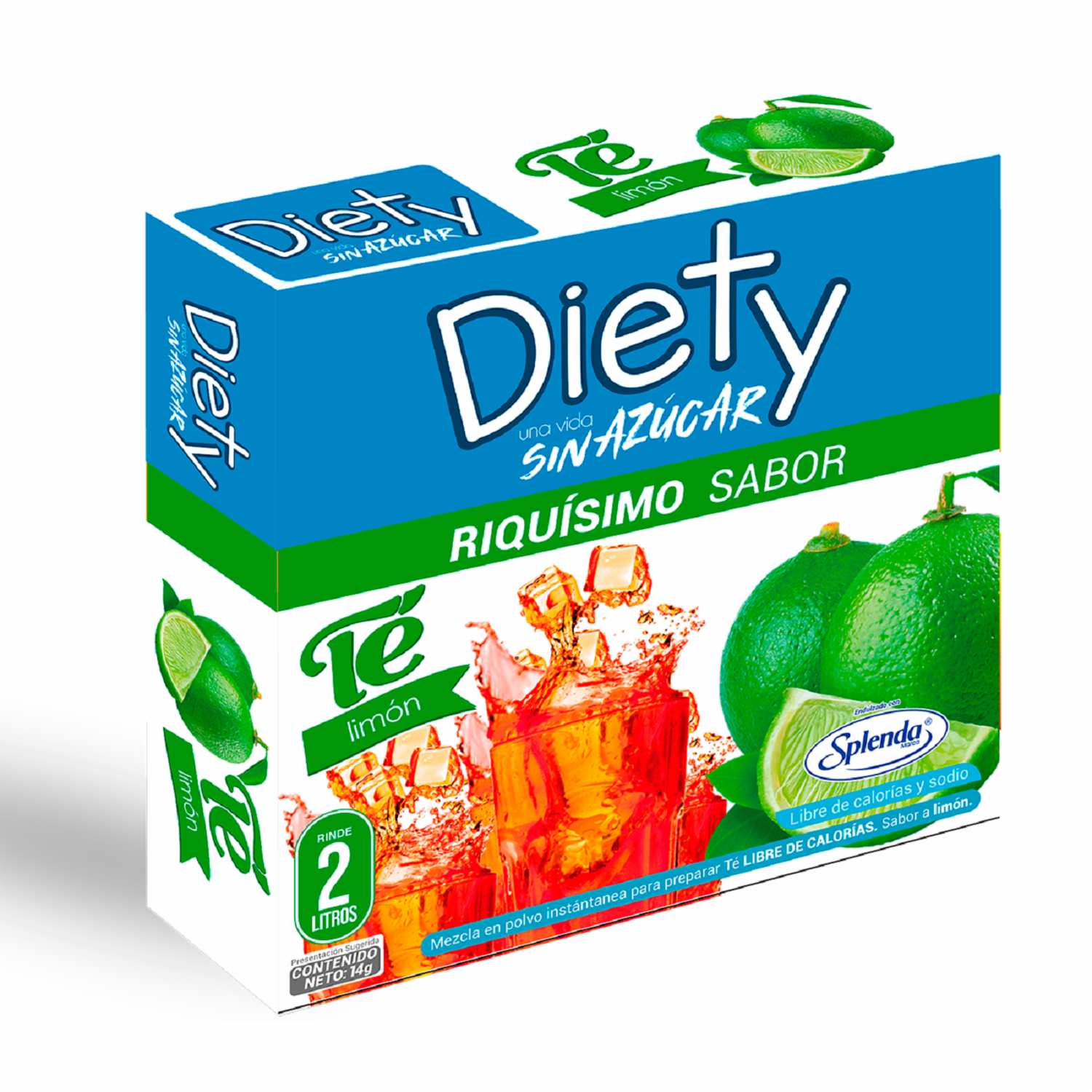 - Té de sabor a limón endulzado con splenda, no contine grasas, refrescante, se disuelve en dos litros de agua