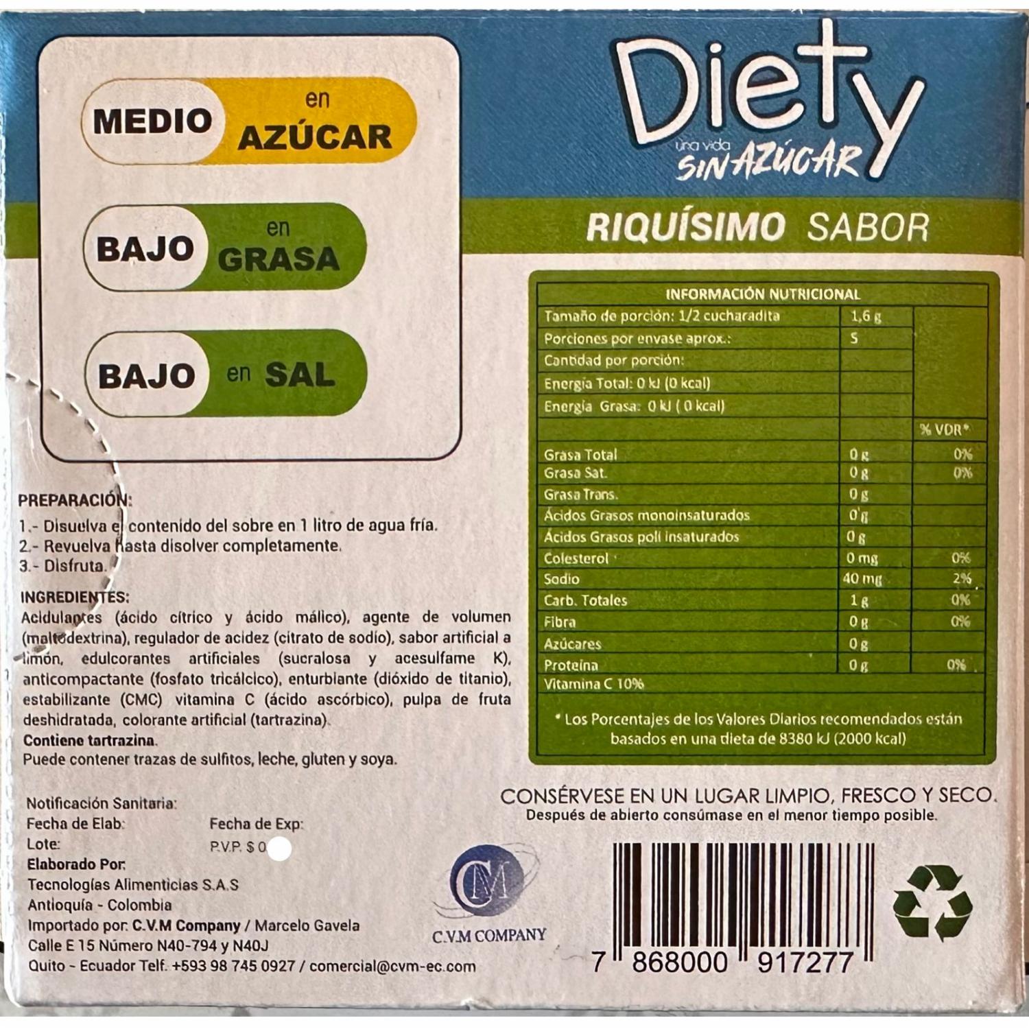 Mezcla Para Té En Polvo Sabor A Limón Sin Azúcar DIETY 2 Litros