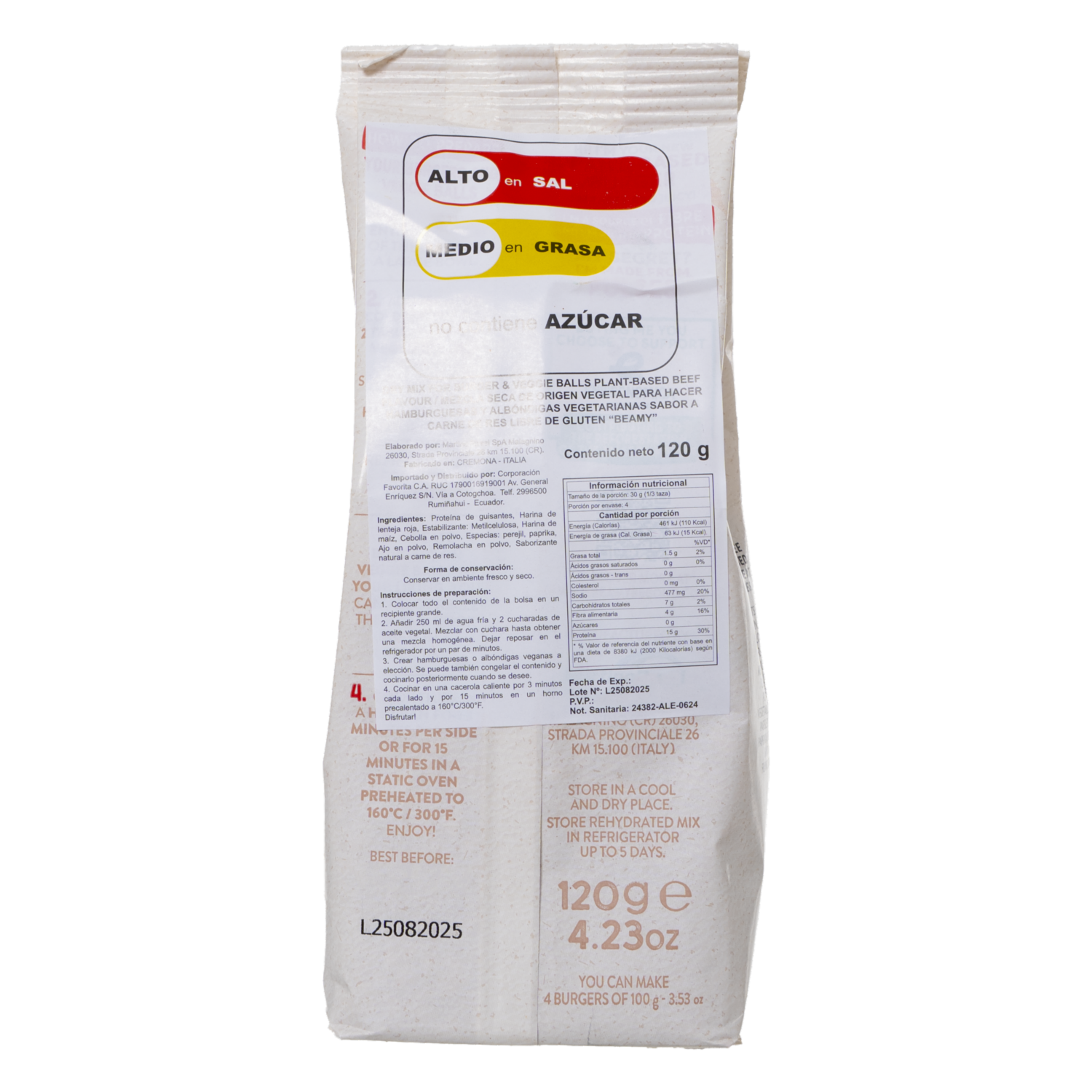 Mezcla Vegetal Para Hacer Hamburguesas De Res BEAMY 120 G