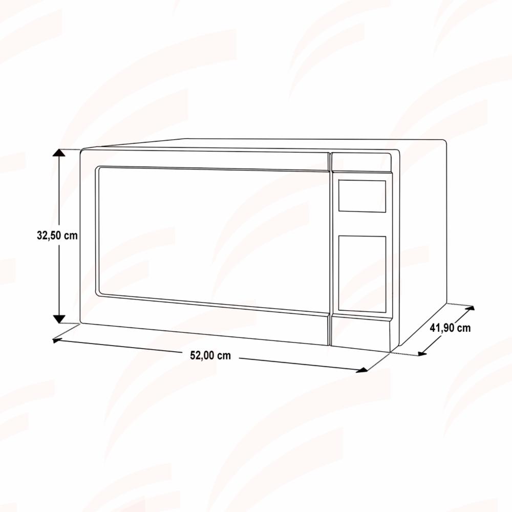 • -Diámetro del plato: 27 cm -Tipo de abertura: Pulsador -Tipo de panel: Membrana -Reloj -Traba de seguridad -11 programas -10 niveles de potencia -1200W de potencia, ideal para mejores resultados
