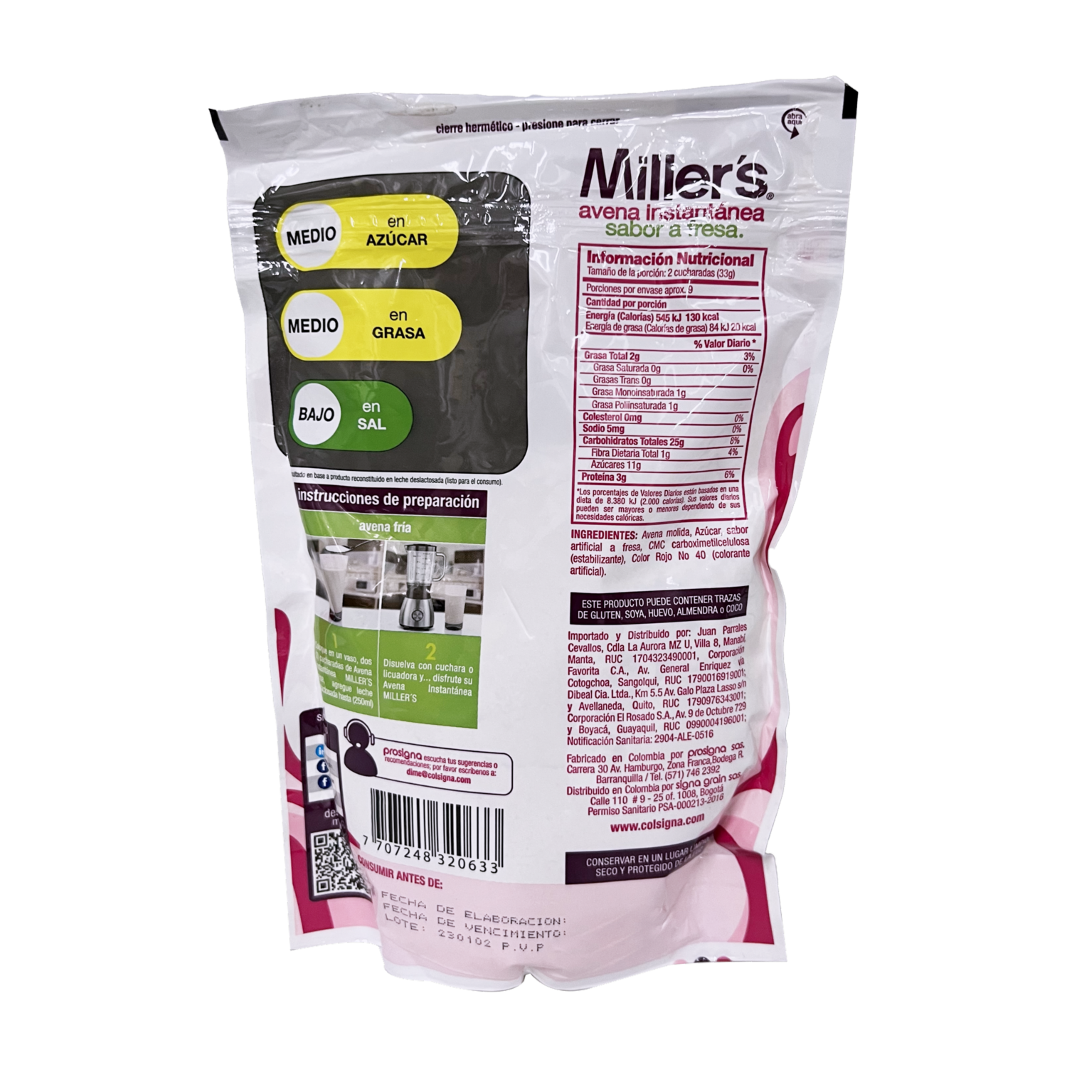 consultando preciosAvena Instantánea Sabor A Fresa MILLER’S 300 G – MILLER´S. Disponible en nuestros locales. Precio y stock pueden variar según la tienda.