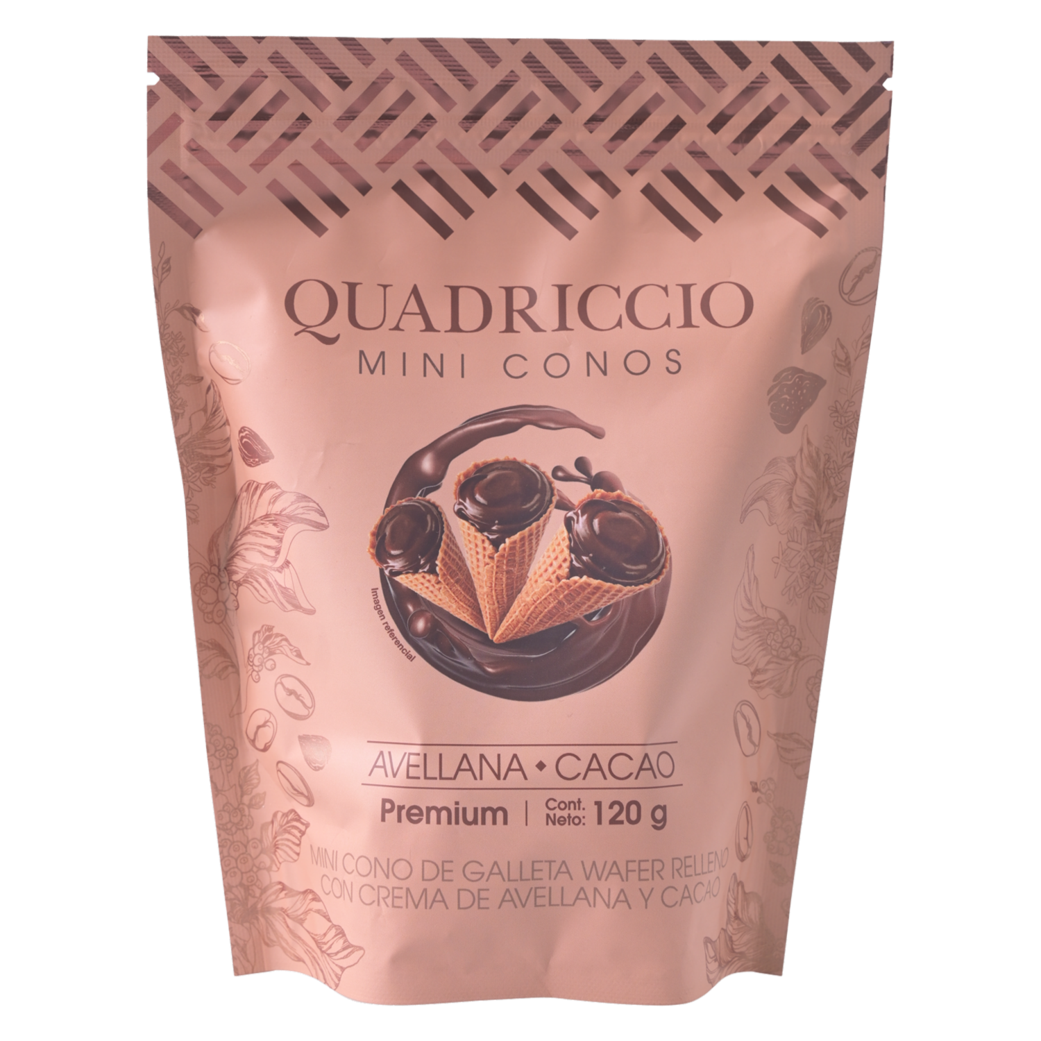 Mini Conos De Galleta Waffer Rellenos Con Crema De Avellanas Y Cacao QUADRICCIO 120 G – QUADRICCIO. Disponible en nuestros locales. Precio y stock pueden variar según la tienda.