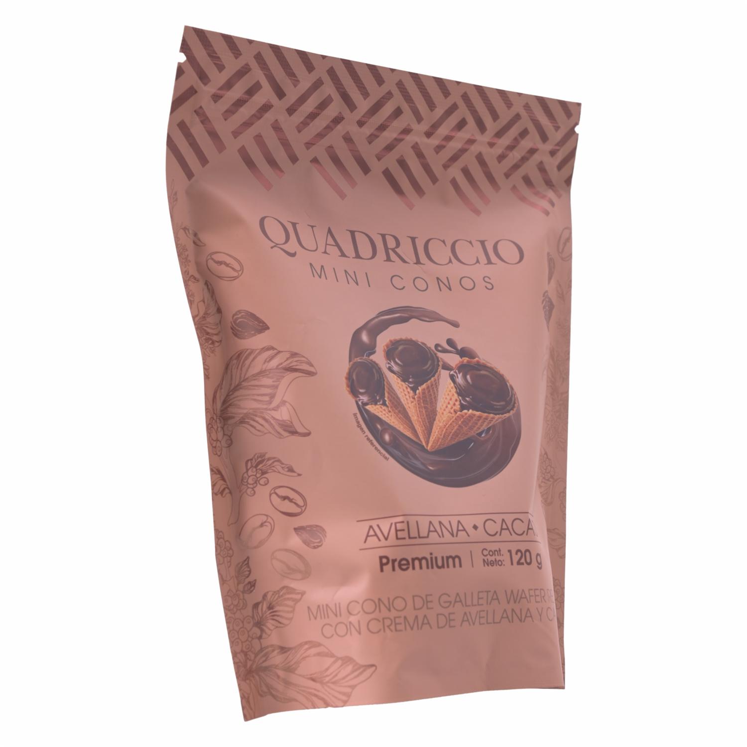 Mini Conos De Galleta Waffer Rellenos Con Crema De Avellanas Y Cacao QUADRICCIO 120 G