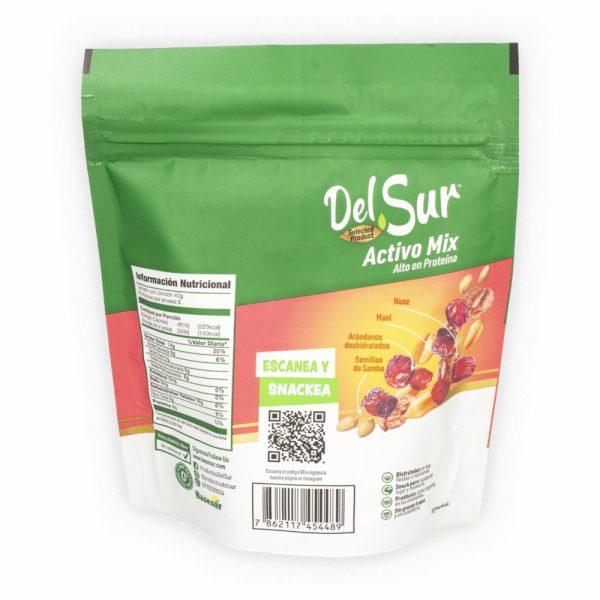 El "Mix de Frutos Secos Activo" de DEL SUR es una mezcla de diferentes tipos de frutos secos que proporcionan una combinación deliciosa y nutritiva. Estos mix suelen ser ideales como snacks saludables y energéticos, ya que los frutos secos son una fuente rica en nutrientes y grasas saludables