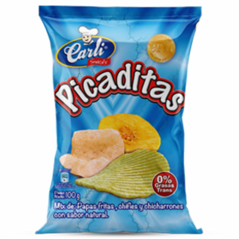 - Deliciosa picadita de papas fritas, chifles y chicharrones con sabor natural, un piqueo ideal para momentos con amigos y familia