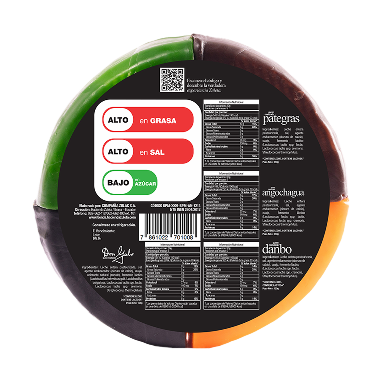 - Disfruta 4 variedades de nuestros icónicos quesos: Don Galo, Danbo, Angochagua y Pategras