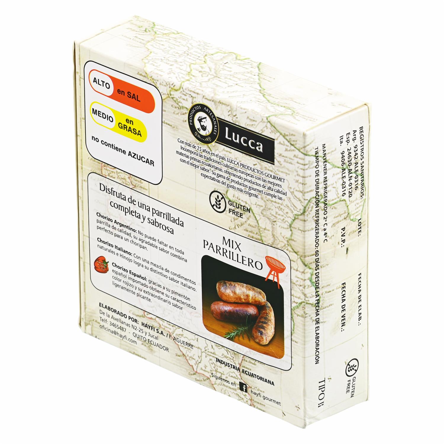 consultando preciosMix Parrillero Chorizos LUCCA 300g – LUCCA. Disponible en nuestros locales. Precio y stock pueden variar según la tienda.