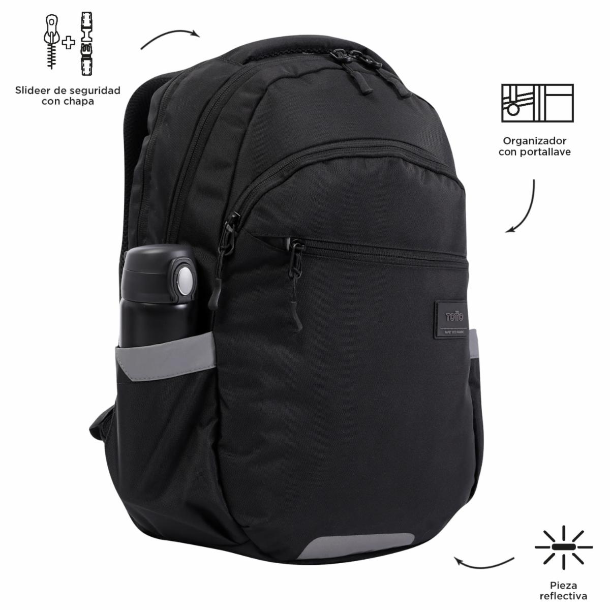 - - Compartimentos adicionales para guardar accesorios como cables, cargadores, mouse, entre otros,- Correas ajustables y acolchadas para mayor comodidad al llevarla en la espalda