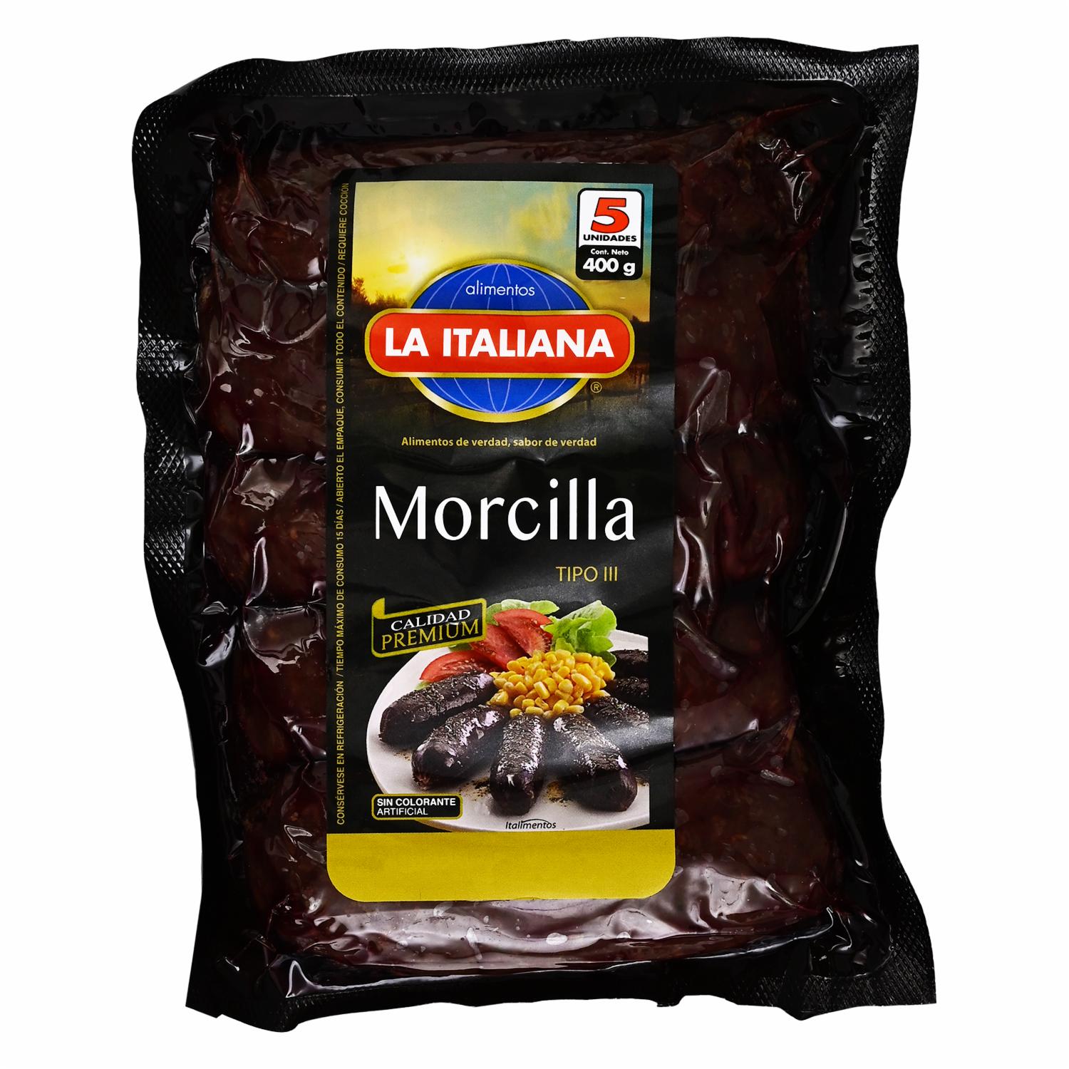 Morcilla Cuencana LA ITALIANA 400 G – LA ITALIANA. Disponible en nuestros locales. Precio y stock pueden variar según la tienda.