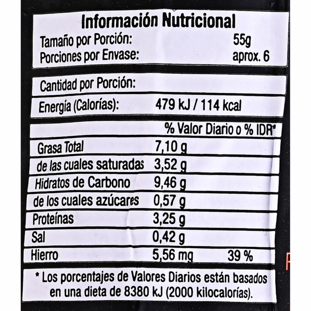 • La presentación de 300 gramos seguramente incluye una pieza de morcilla, que es un embutido elaborado a base de sangre de cerdo, arroz y especias