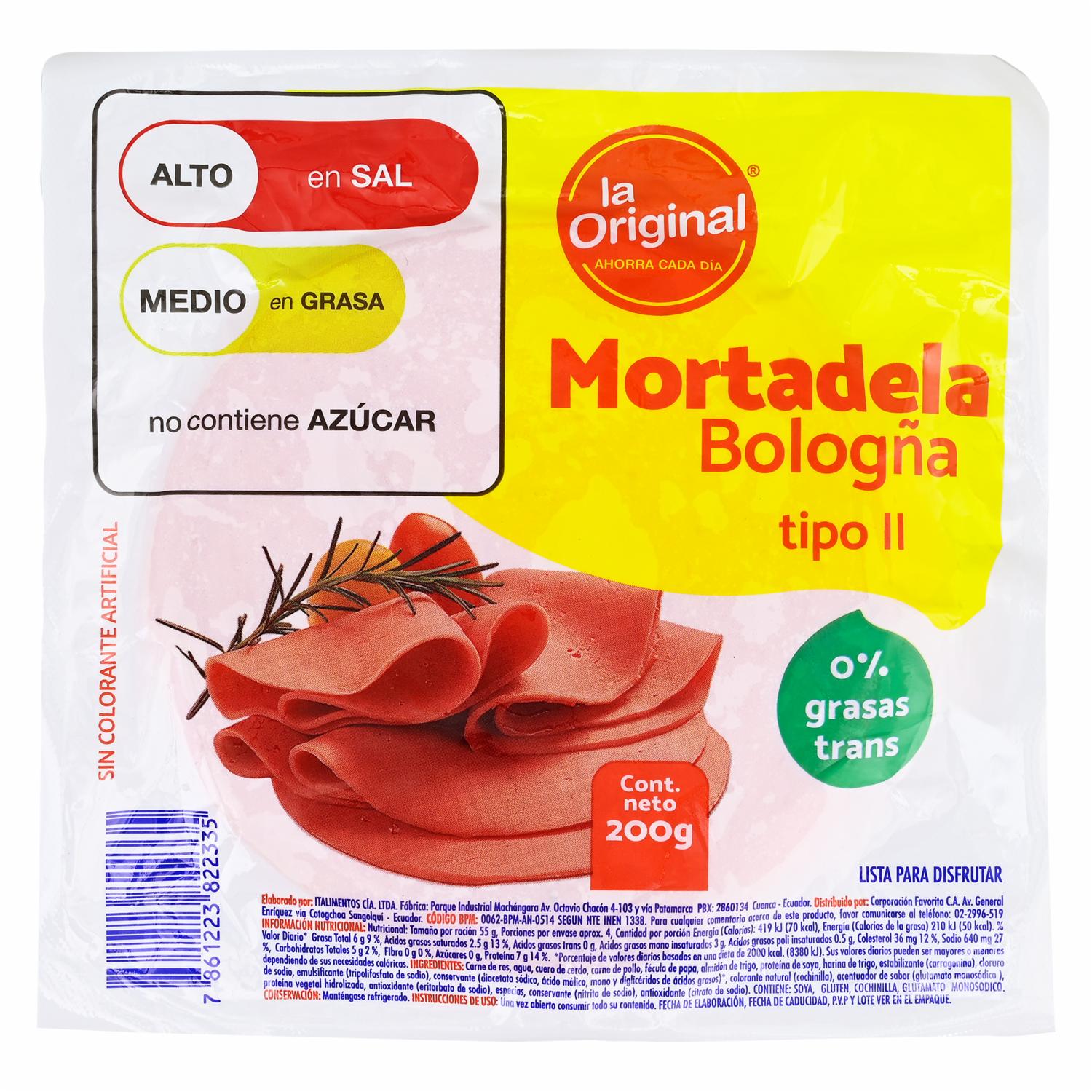 consultando preciosMortadela Bologña LA ORIGINAL 200 G – LA ORIGINAL. Disponible en nuestros locales. Precio y stock pueden variar según la tienda.