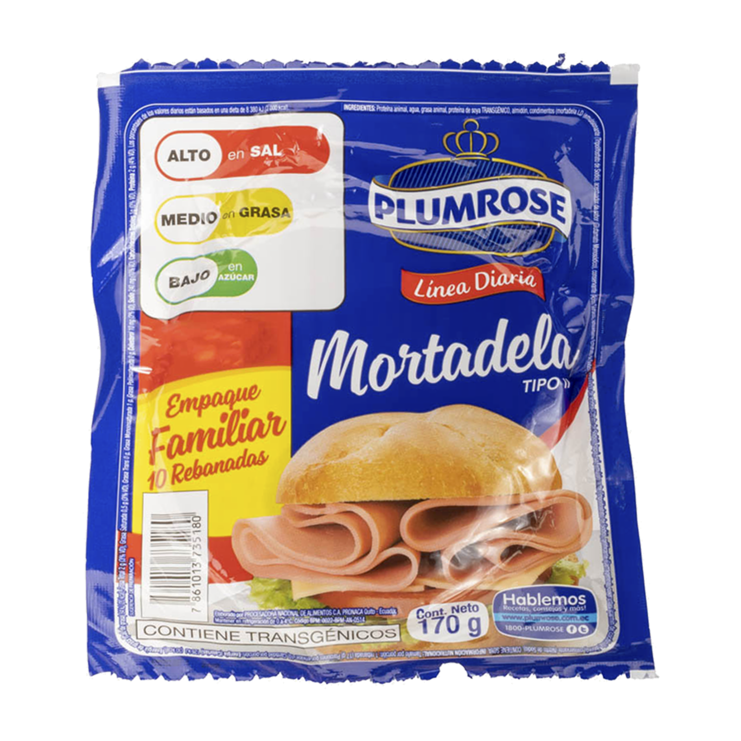 consultando preciosMortadela Línea Diaria PLUMROSE 170 G – PLUMROSE. Disponible en nuestros locales. Precio y stock pueden variar según la tienda.