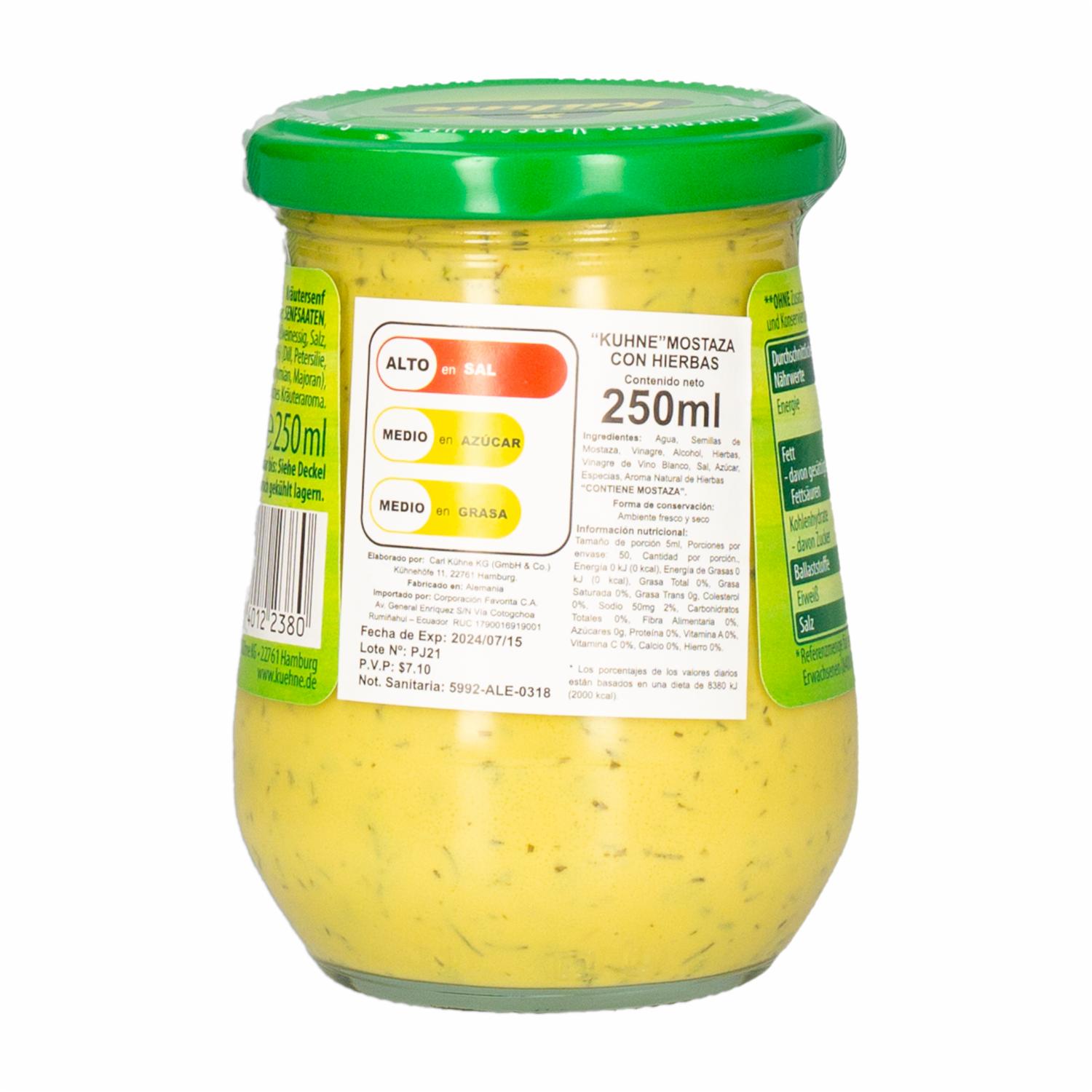 Mostaza Con Hierbas KÜHNE 250 Ml – KUHNE. Disponible en nuestros locales. Precio y stock pueden variar según la tienda.