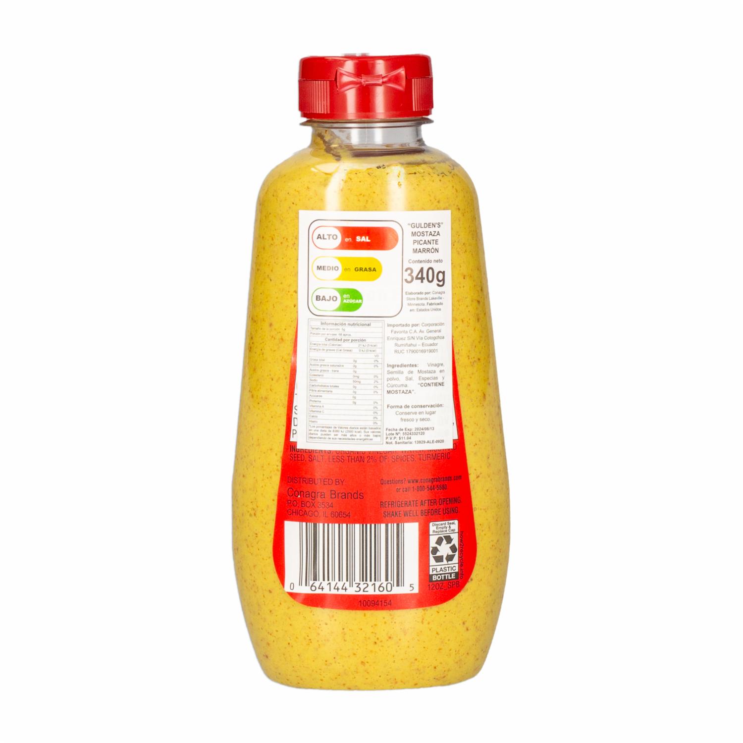 Mostaza Squeze Spicy GULDEN’S 340 G – GULDEN’S. Disponible en nuestros locales. Precio y stock pueden variar según la tienda.