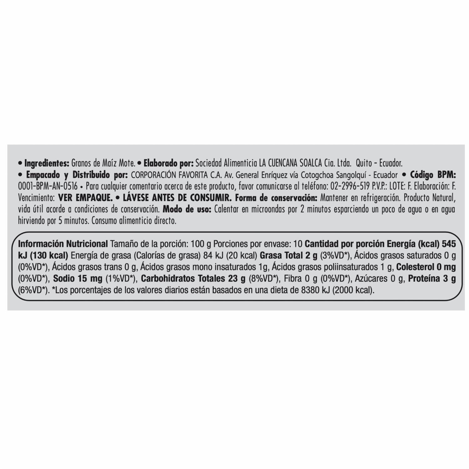 Mote Cocinado Sin Sal SUPERMAXI 1000 G