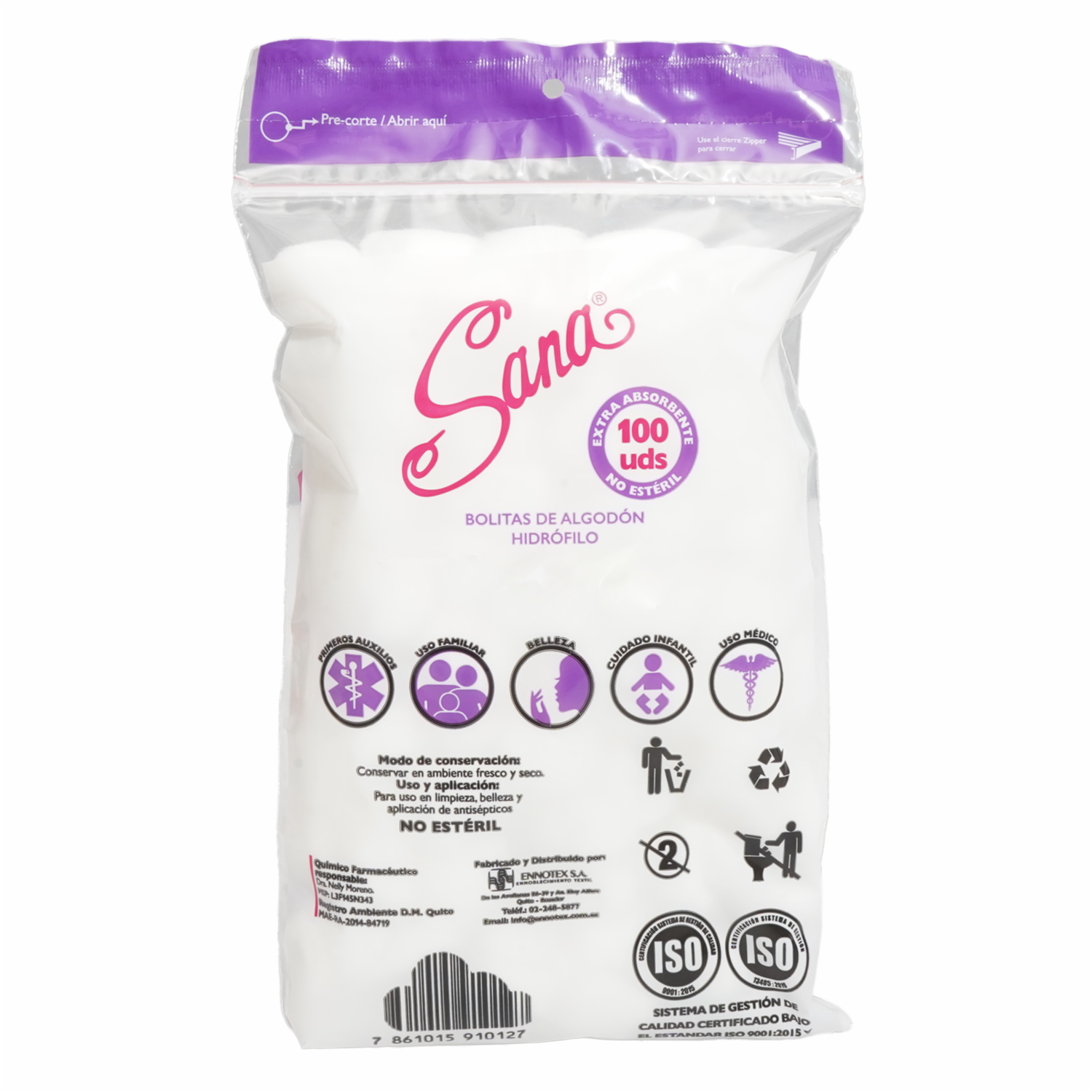 Motitas De Algodón SANA 100 Unidades