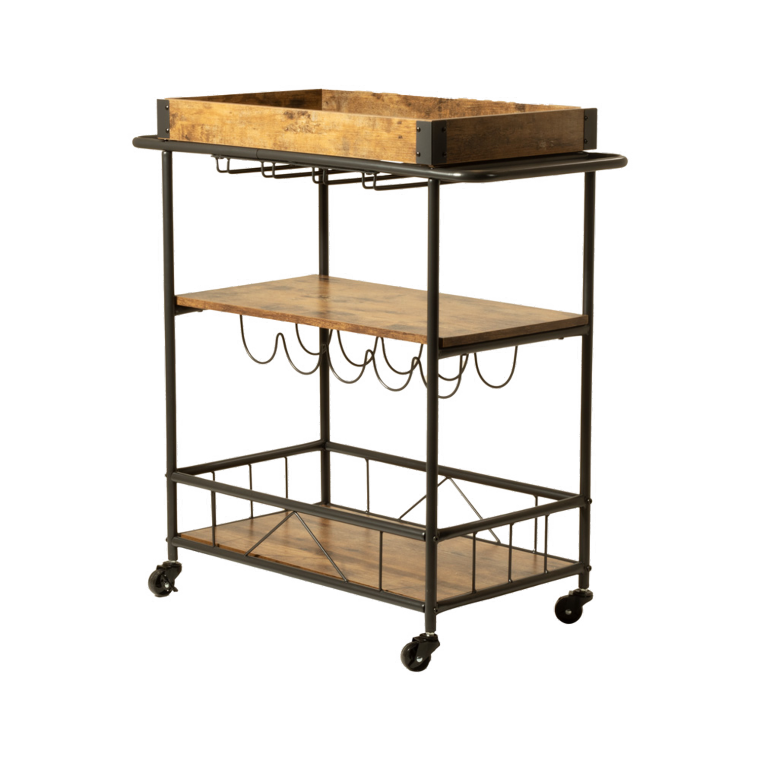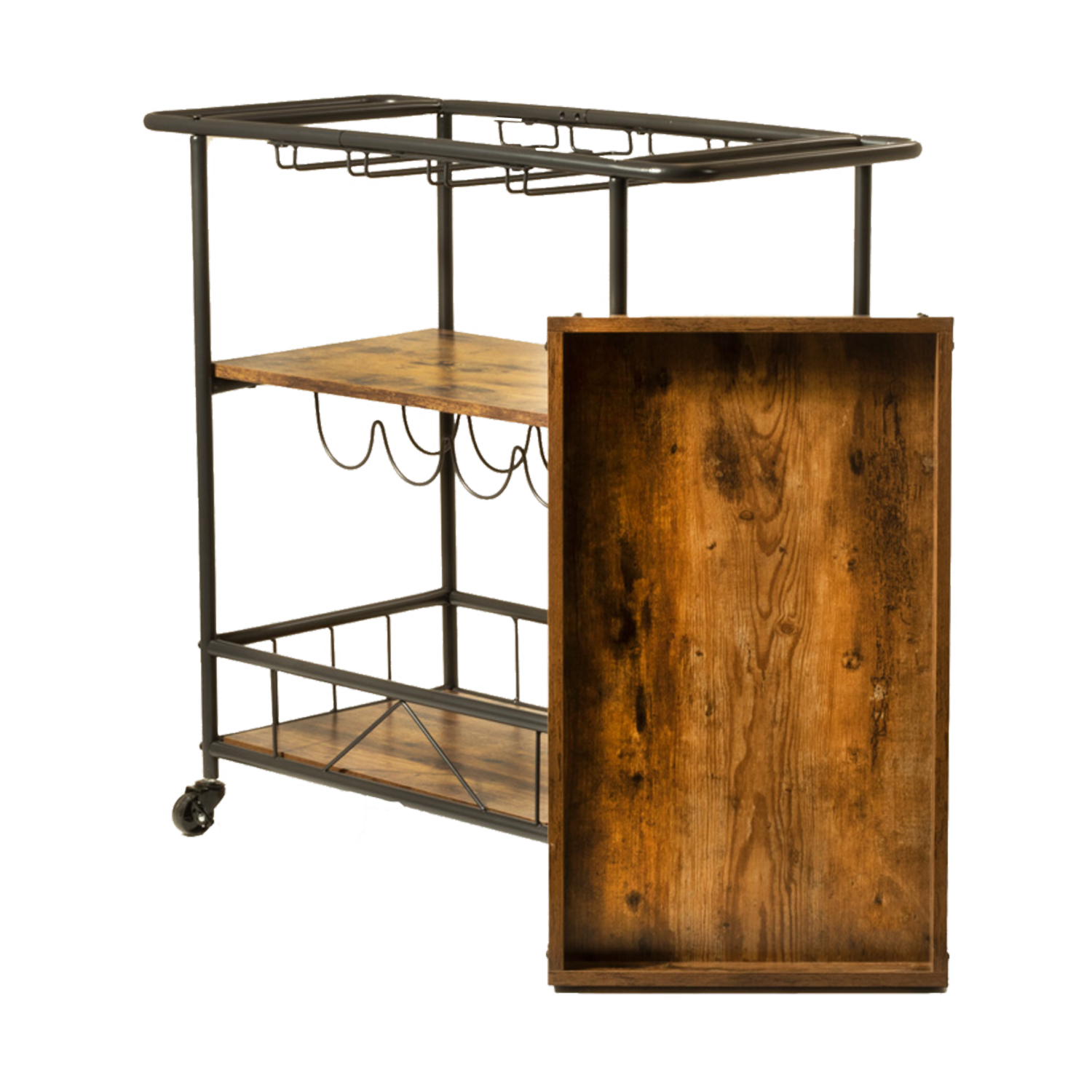 Mueble Bar Carrito Con Charol FREE HOME Madera y Hierro