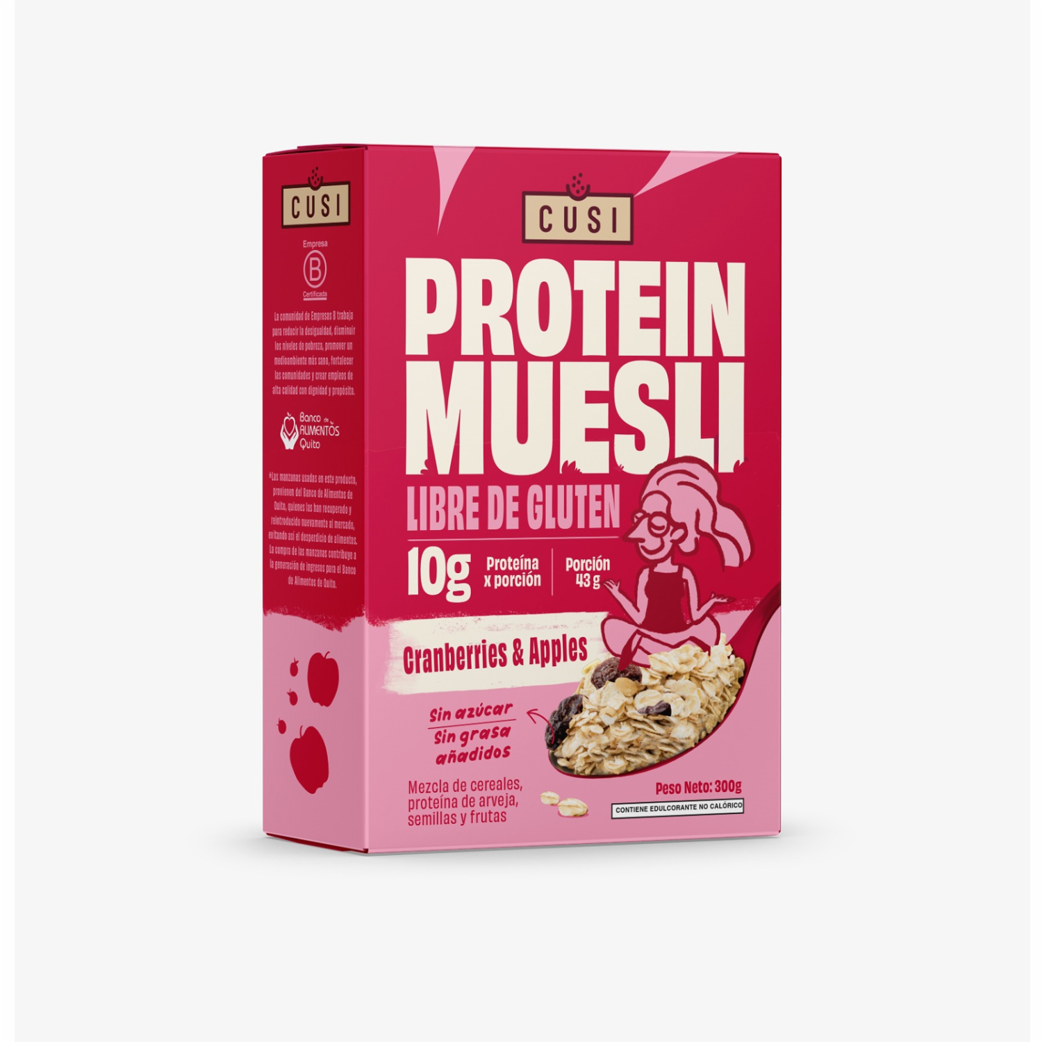 - El muesli de arándanos y manzana CUSI 300 g es una deliciosa y nutritiva mezcla de ingredientes naturales que proporciona una opción de desayuno saludable y satisfactoria. Este muesli combina la frescura y dulzura de los arándanos y las manzanas con una variedad de cereales y semillas, creando una mezcla equilibrada y llena de sabor
