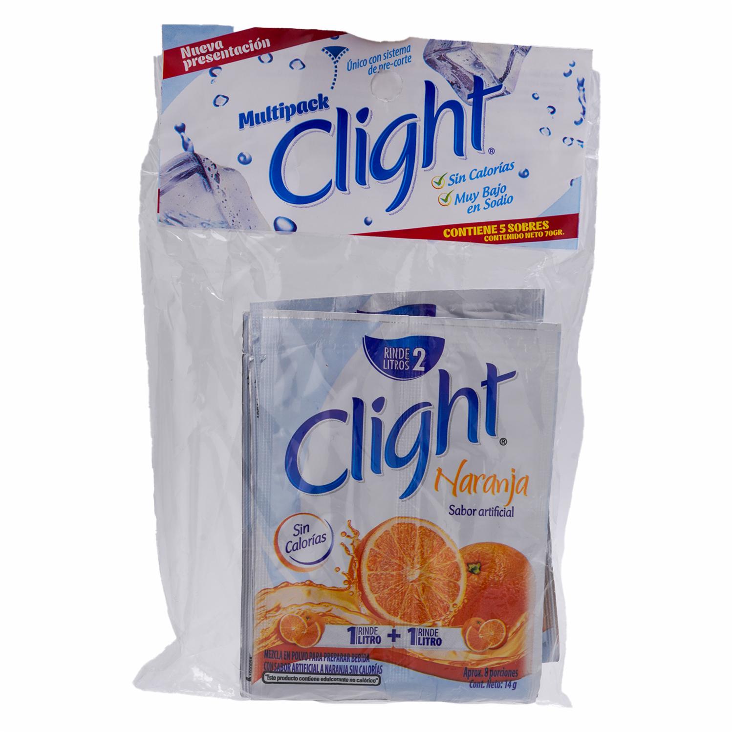 - Bebida en polvo Clight sin calorías. Vacía el contenido de un sobre en una jarra y agrega 1 litro de agua bien fría y agita hasta disolver todo el contenido. No necesita azúcar adicional. Con Clight prepara lo que le hace bien a ti y a tu familia y refréscate con el mejor sabor