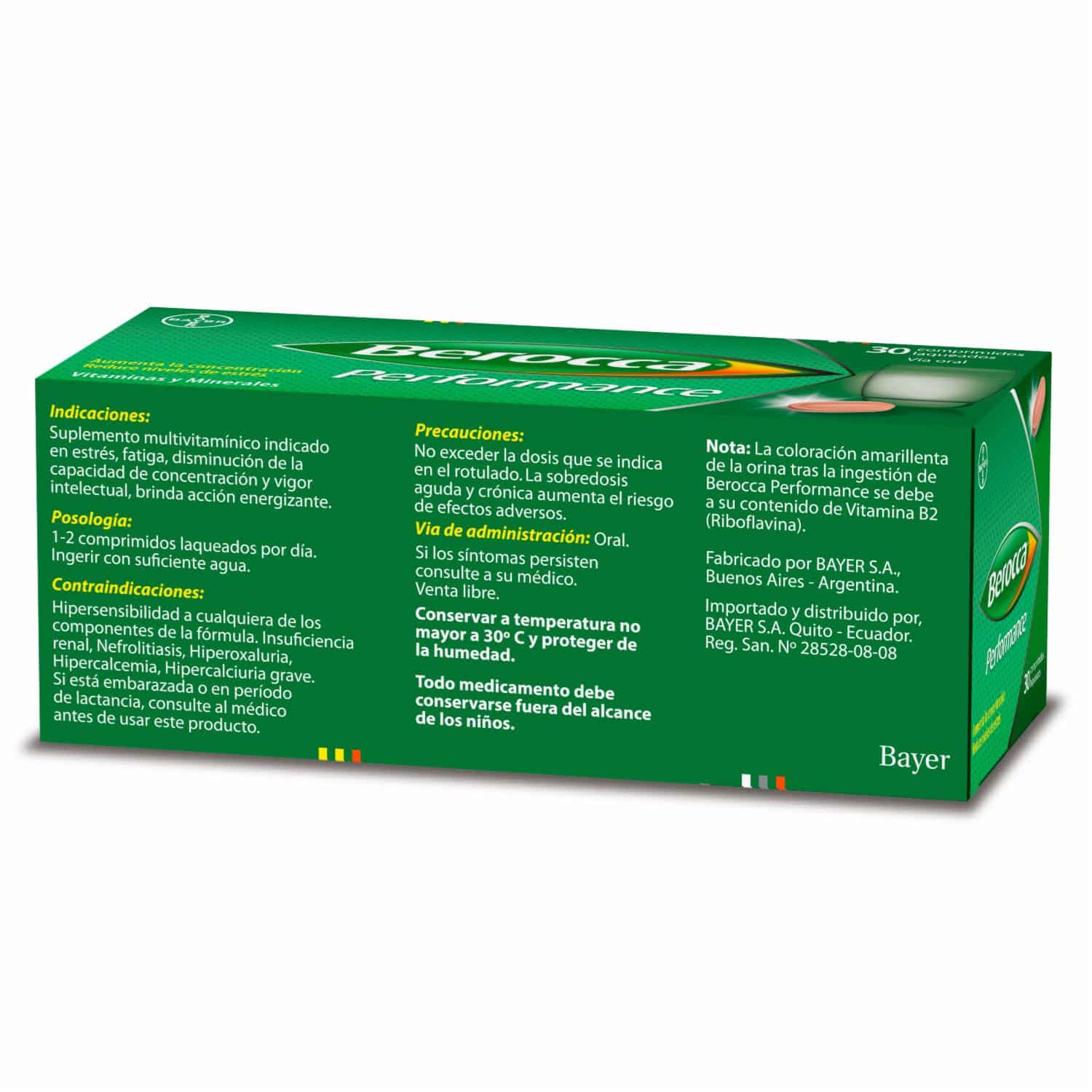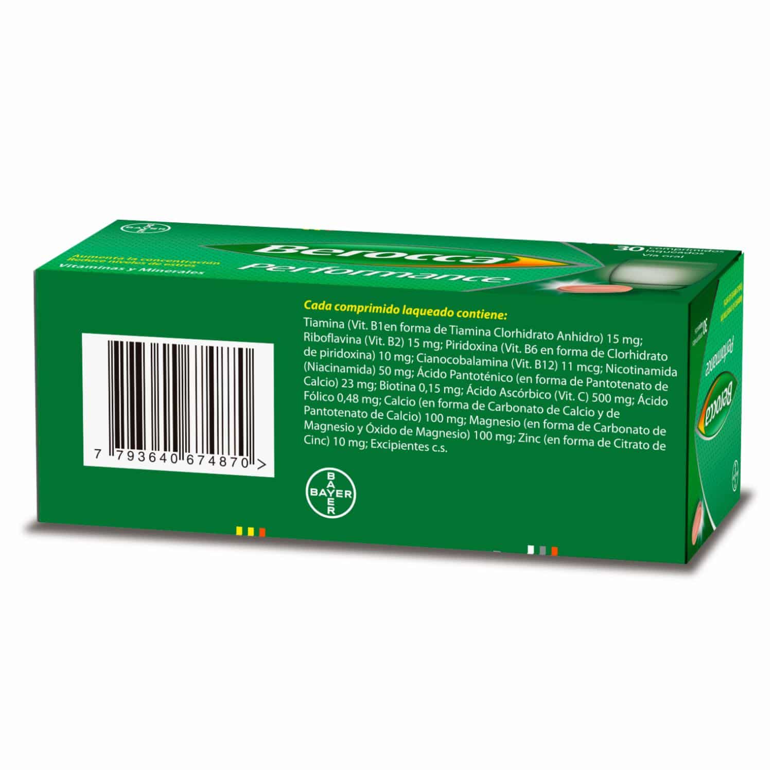 Berocca Performance Tabletas Contiene Vitaminas B2 Y B12 Ayudan A Disminuir El Cansancio Y La Fatiga. El Acido Pantoténico Contribuye Al Rendimiento Intelectual Normal. La Vitamina B6 Contribuye Al Funcionamiento Normal Del Sistema Nervioso. La Vitamina C Contribuye Al Metabolismo Energético Normal. La Vitamina B3 Y La Biotina Contribuyen A La Función Psicológica Normal