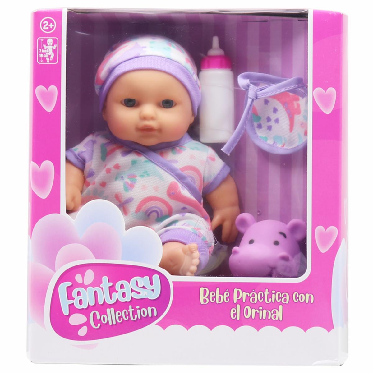 - ¡Aprender a ir al baño es más divertido con la muñeca bebé En Entrenamiento Fantasy! Con su colorido conjunto de arcoíris y nubes, orinal en forma de hipopótamo, biberón y toallita, este set acompaña a los pequeños en sus primeras rutinas. Ideal para fomentar hábitos con juego y ternura. ¡Haz del aprendizaje una aventura con Fantasy en Juguetón, donde cada paso cuenta con amor!