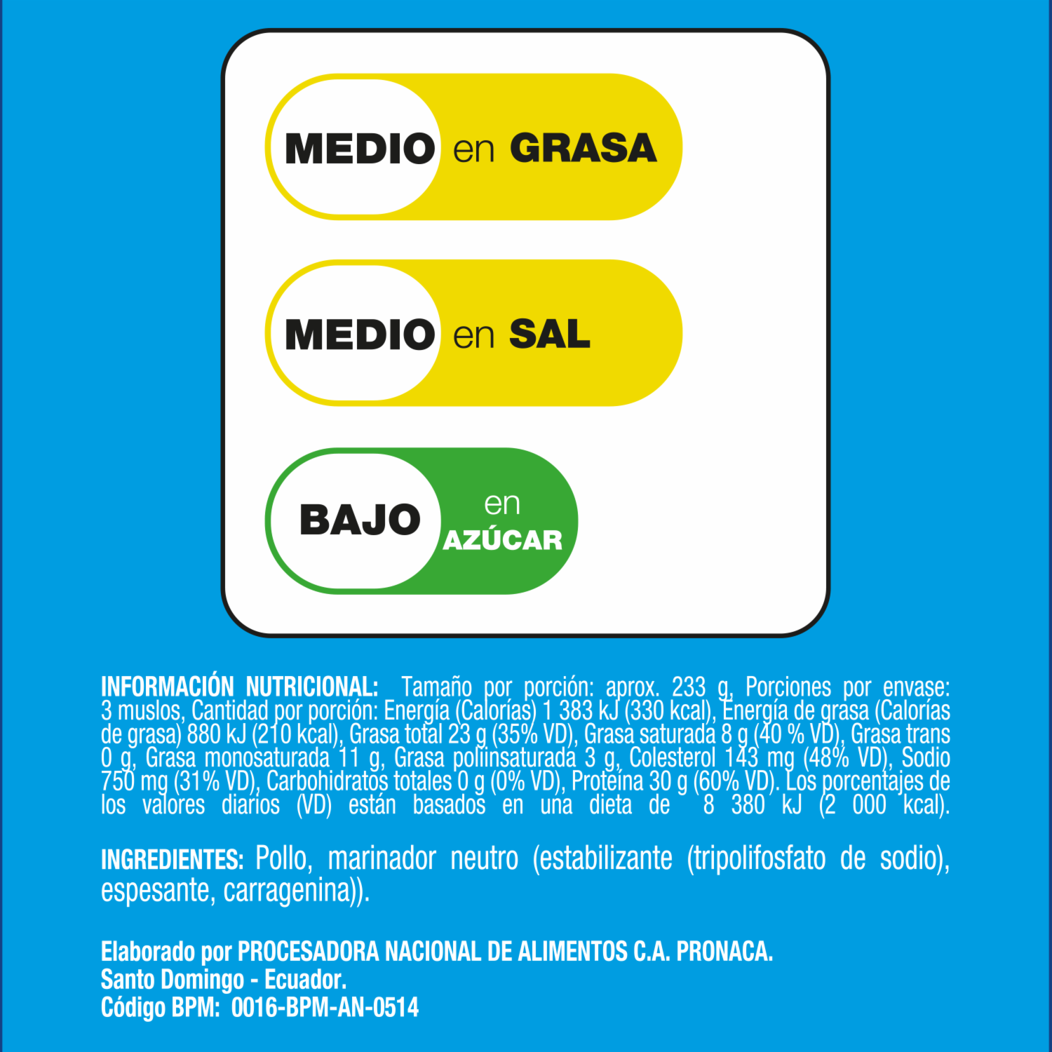 - Tiernos, jugosos y llenos de sabor, los muslos de pollo sin piel MR. POLLO son perfectos para todo tipo de preparaciones: al horno, guisados o a la parrilla. Su textura suave y fresca los convierte en la elección ideal para comidas familiares llenas de sabor y nutrición. ¡Cocina fácil y deliciosa en cada bocado!