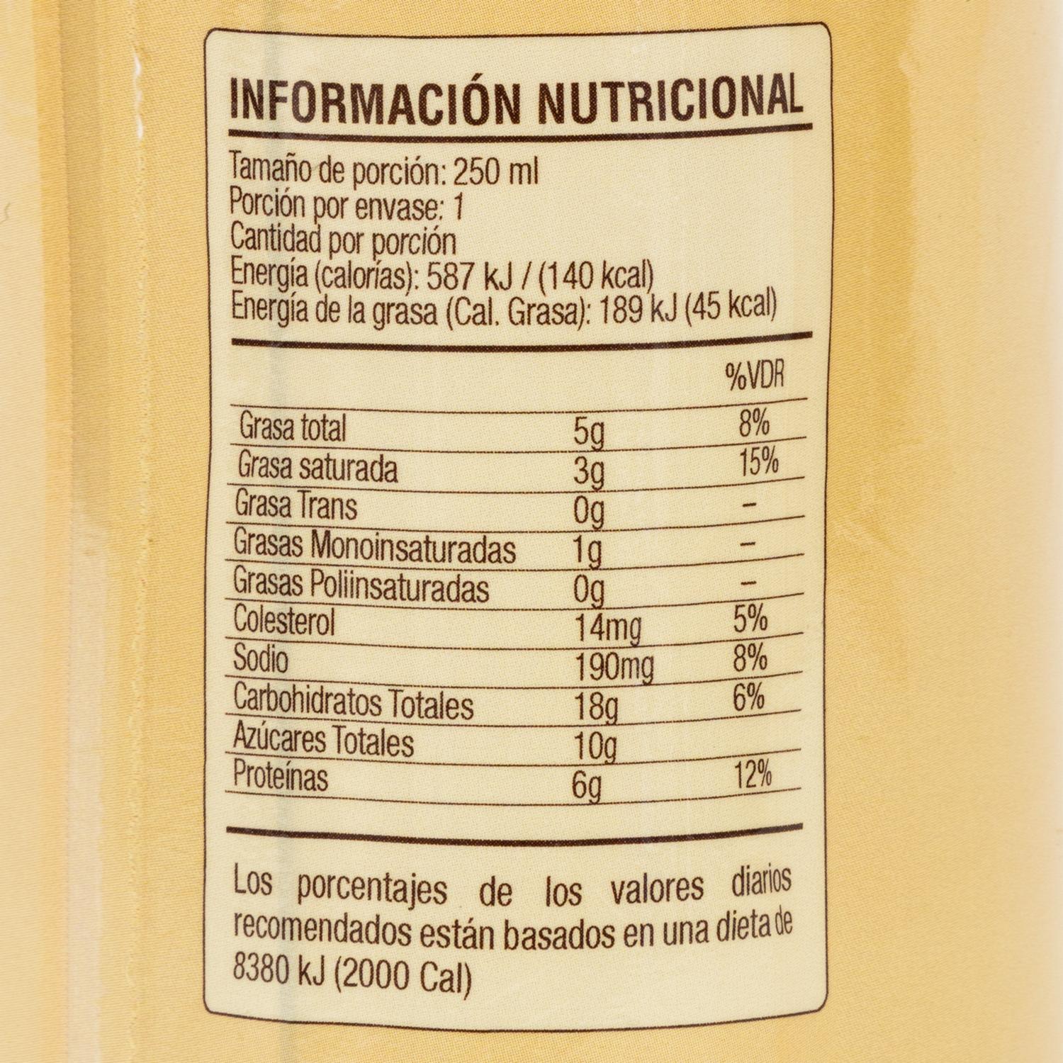 Contiene leche, contiene sulfitos. Leche deslactosada con café y chocolate. Contiene edulcorante no calórico. Mantener en un ambiente fresco y seco. Una vez abierto refrigerar y consumir en el menor tiempo posible. Tomar bien frío