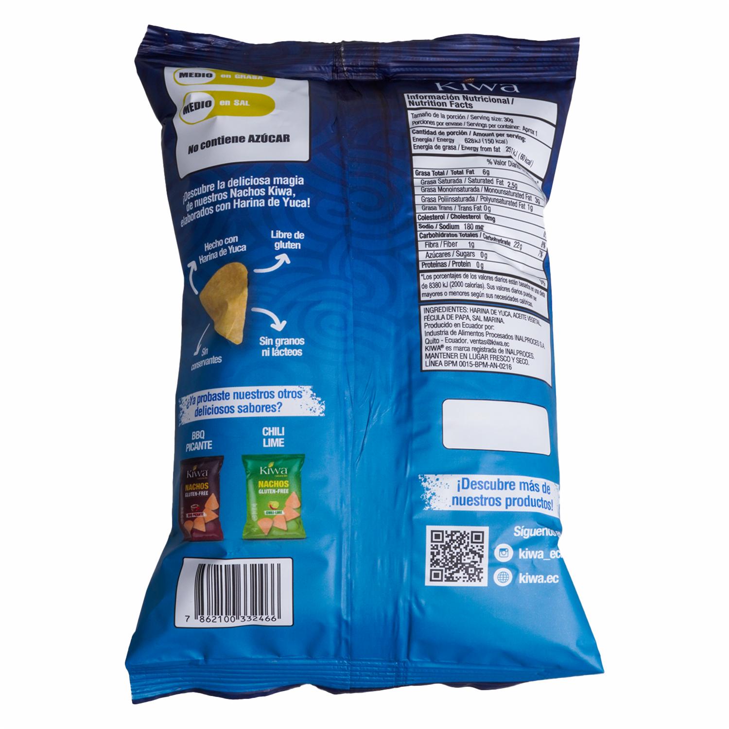 - Disfruta de un snack clásico con un toque gourmet. Los Nachos Sal Marina de KIWA destacan por su textura crujiente y su sabor natural, realzado con la cantidad perfecta de sal marina. Elaborados con ingredientes seleccionados, son ideales para quienes prefieren sabores simples pero sabrosos. Práctica presentación de 40 gramos para llevar a cualquier parte