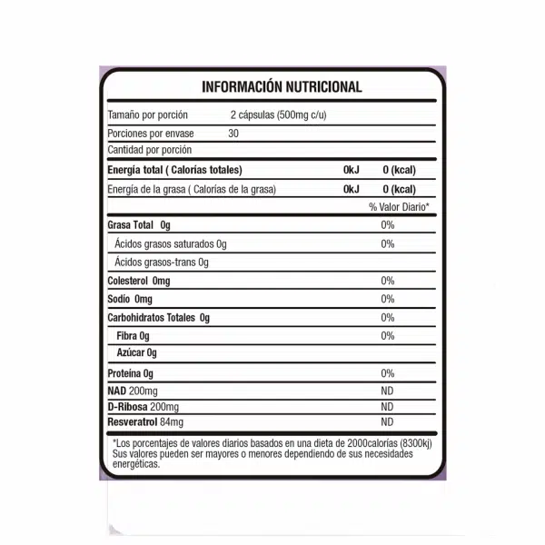 Nad D-Ribosa Y Resveratrol Suplemento En Cápsulas VITAHEALTH