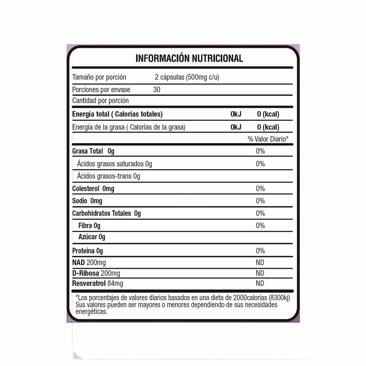 Nad D-Ribosa Y Resveratrol Suplemento En Cápsulas VITAHEALTH 60X500 Mg